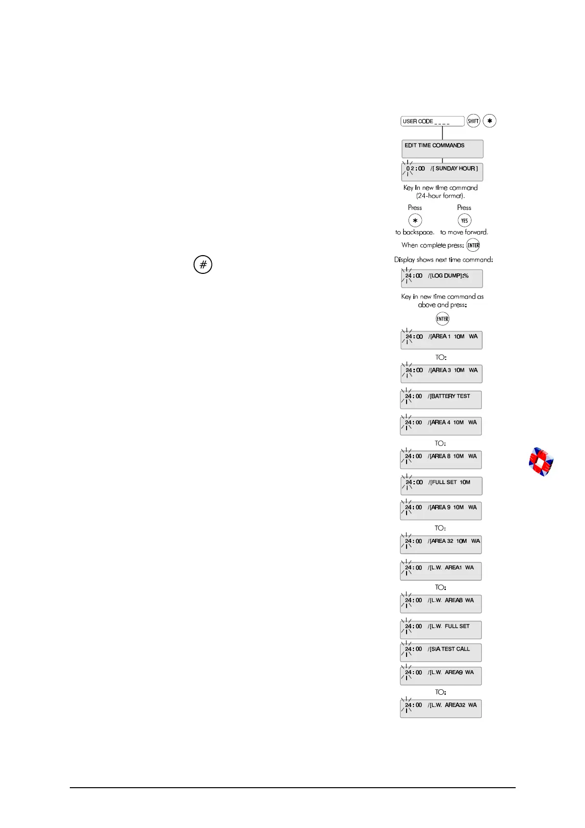 Certain time commands are for installer use only, as indicated below.