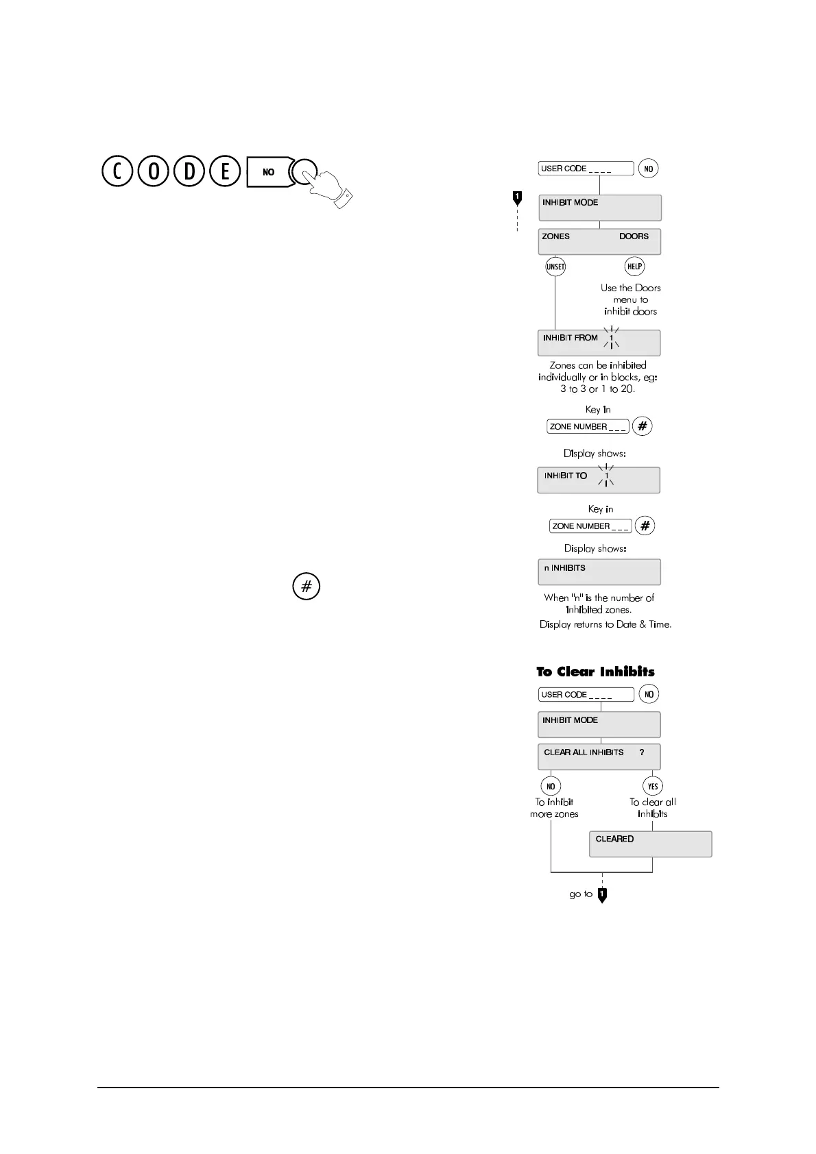 appear in the display. Press YES to clear the inhibited zones. Press NO
