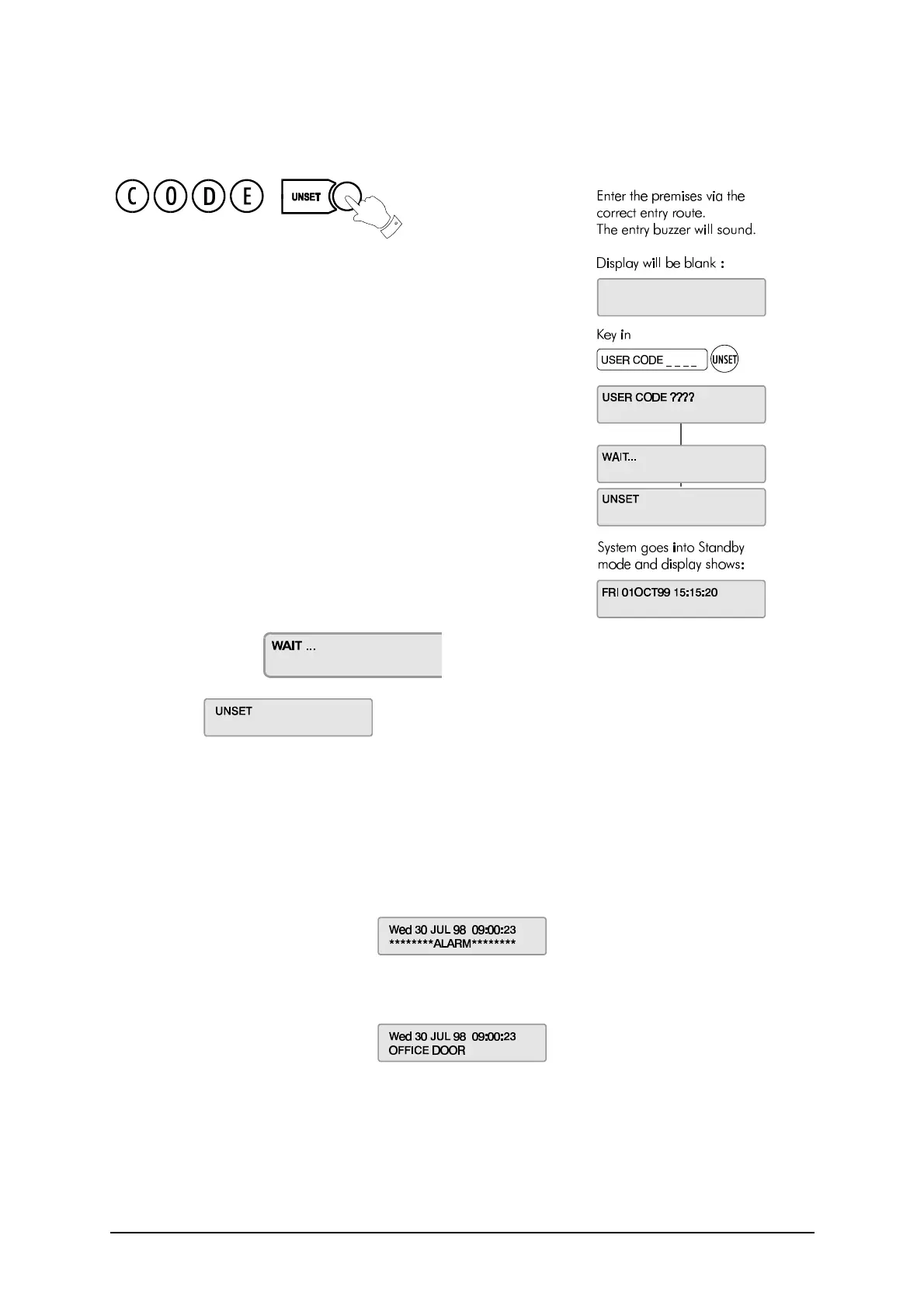 followed by the cause of the alarm, i.e. which zone has been opened.