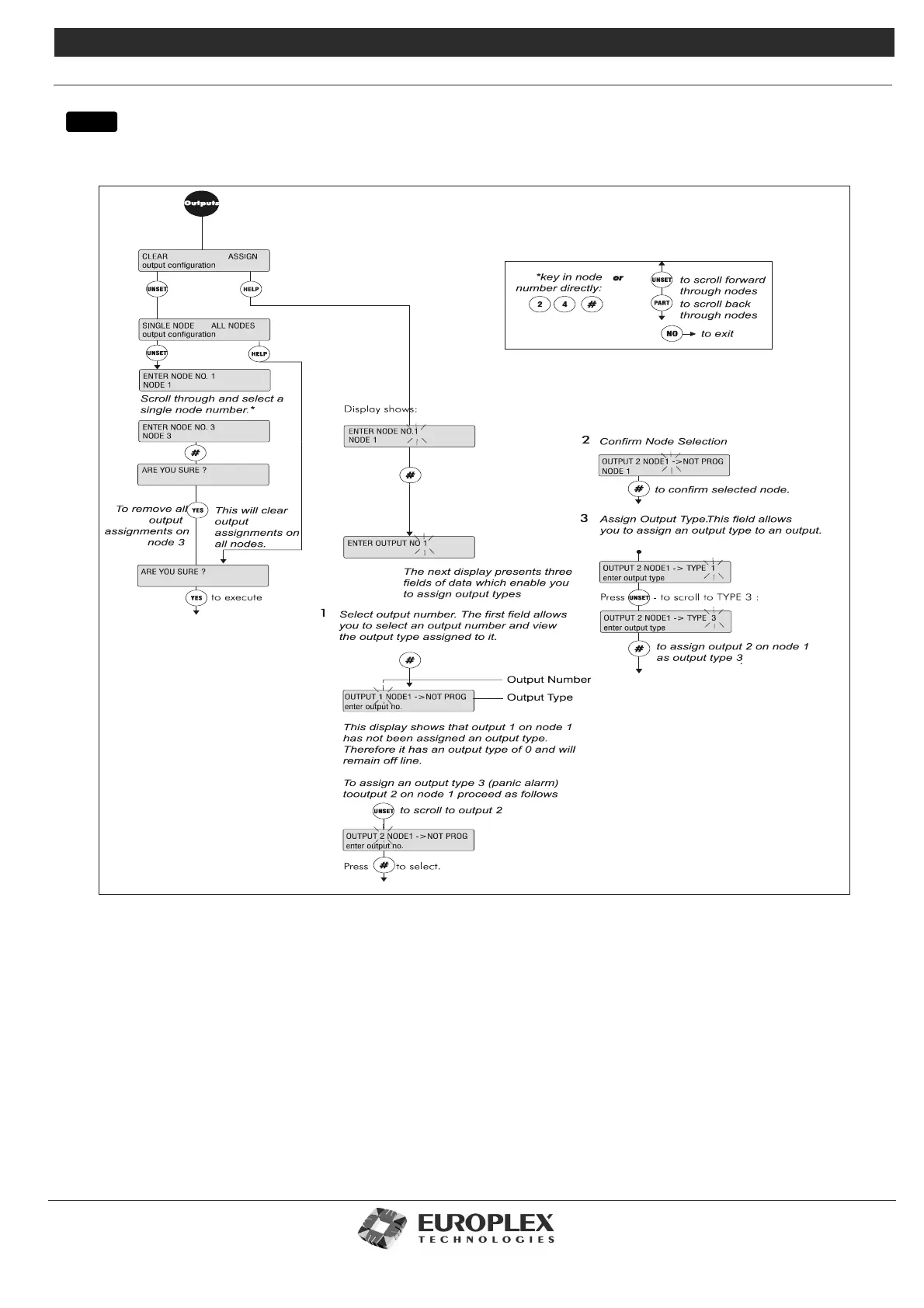 • ASSIGN: This menu allows you to assign outputs to node relays. An output function determines an output’s behaviour (the