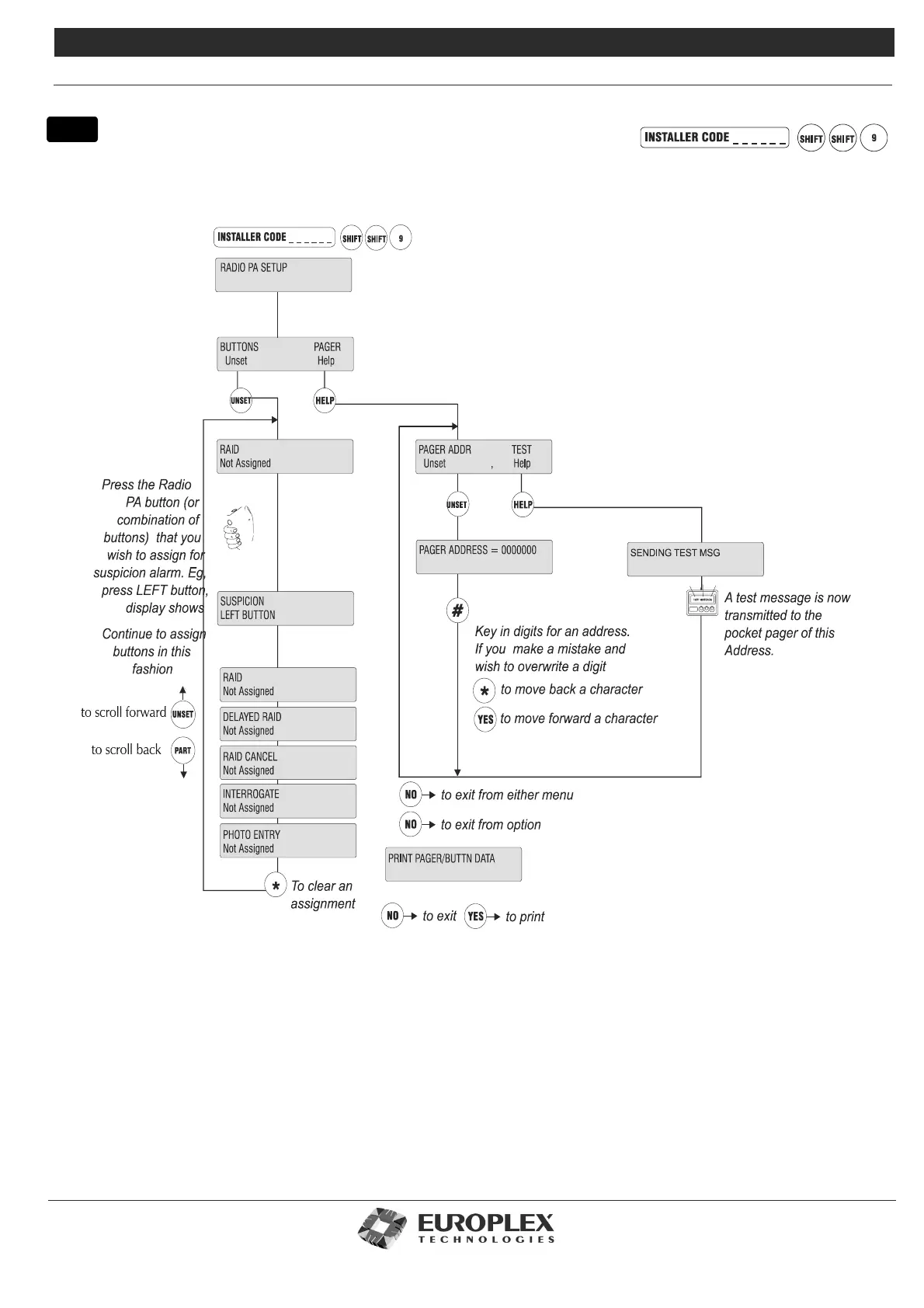 Each pager unit has a unique 7 digit address. Key in this address as shown and select the test function to send a message to the