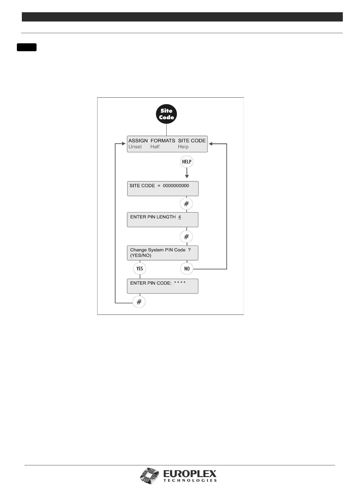 Function: This menu allows you to setup the Site codes for cards, to specify the pin code length, and to enter the system pin