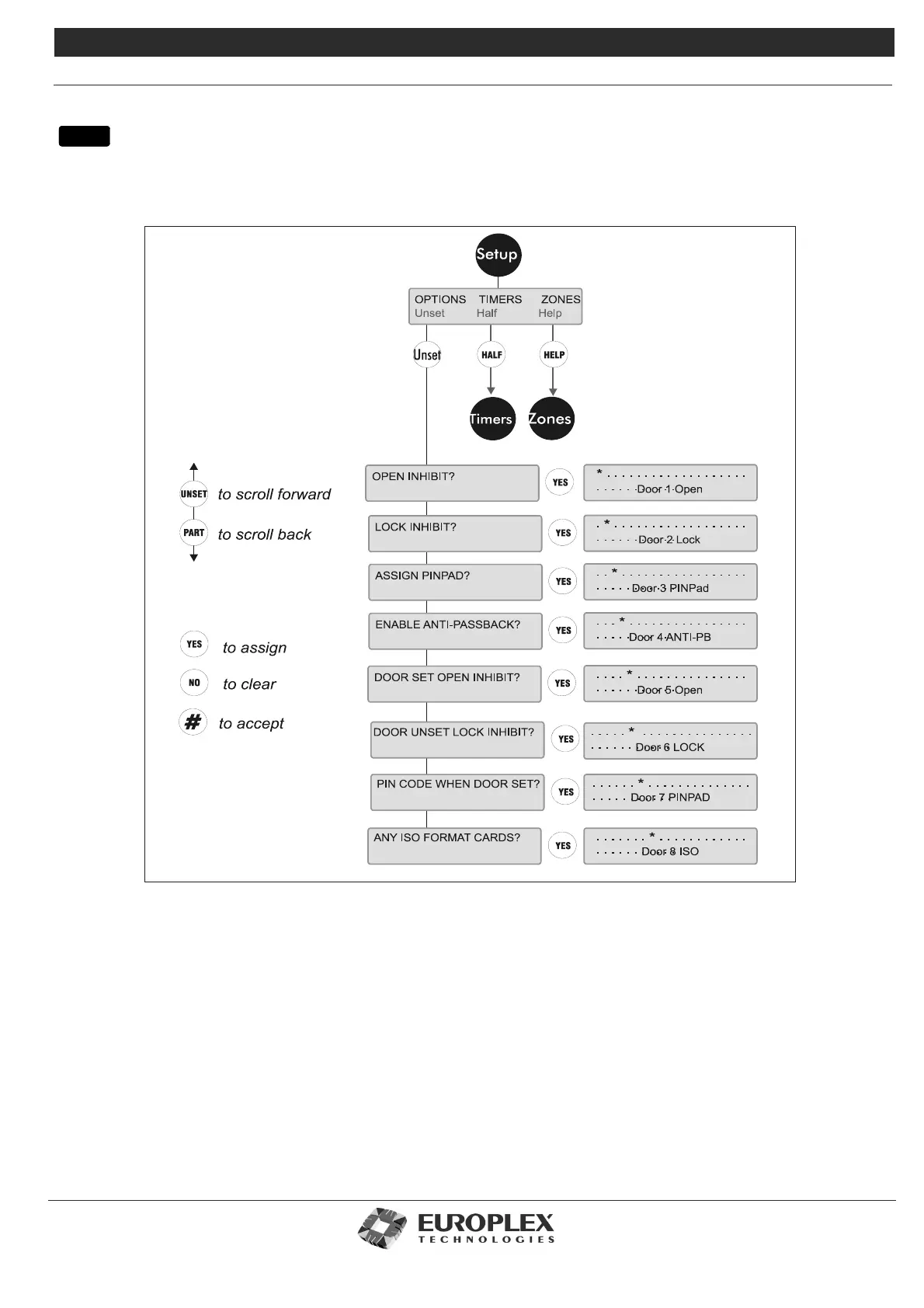 will then remove the option from the door. UNSET scrolls to the next door, PART scrolls back to the previous door. The * button