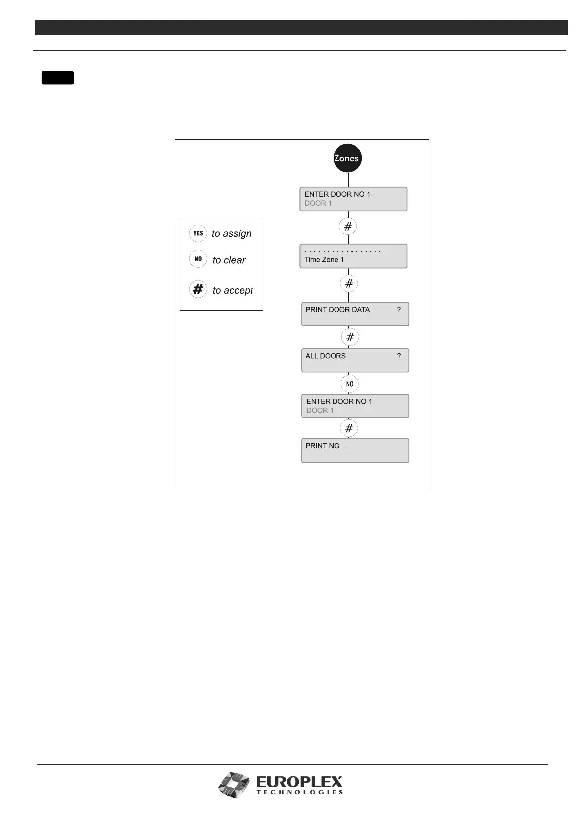 door, use the UNSET and PART keys to move to the zone of your choice. Selecting YES assigns that zone to your Door. NO will
