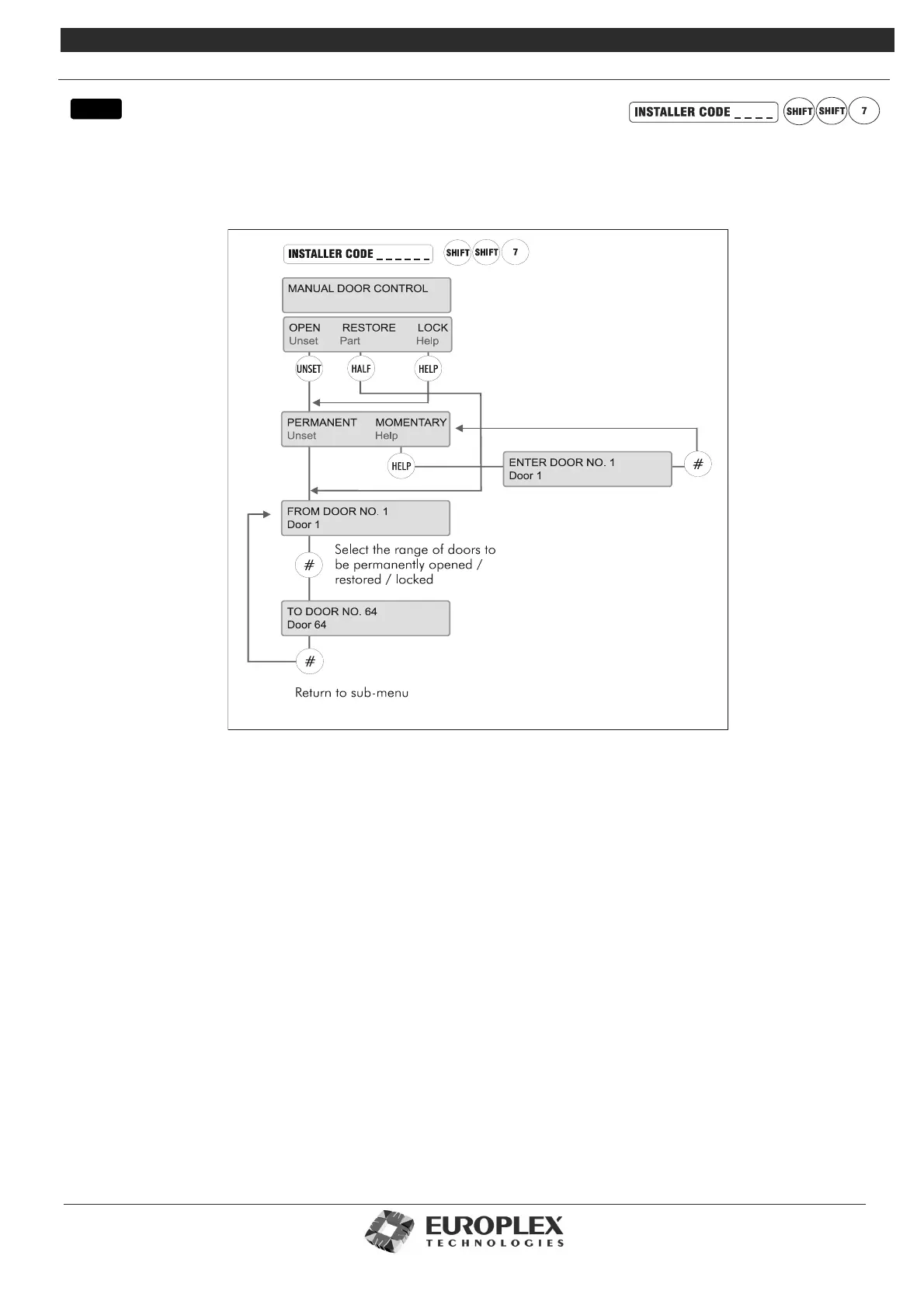 This menu allows you to permanently open or lock a door or range of doors and to momentarily open a door.