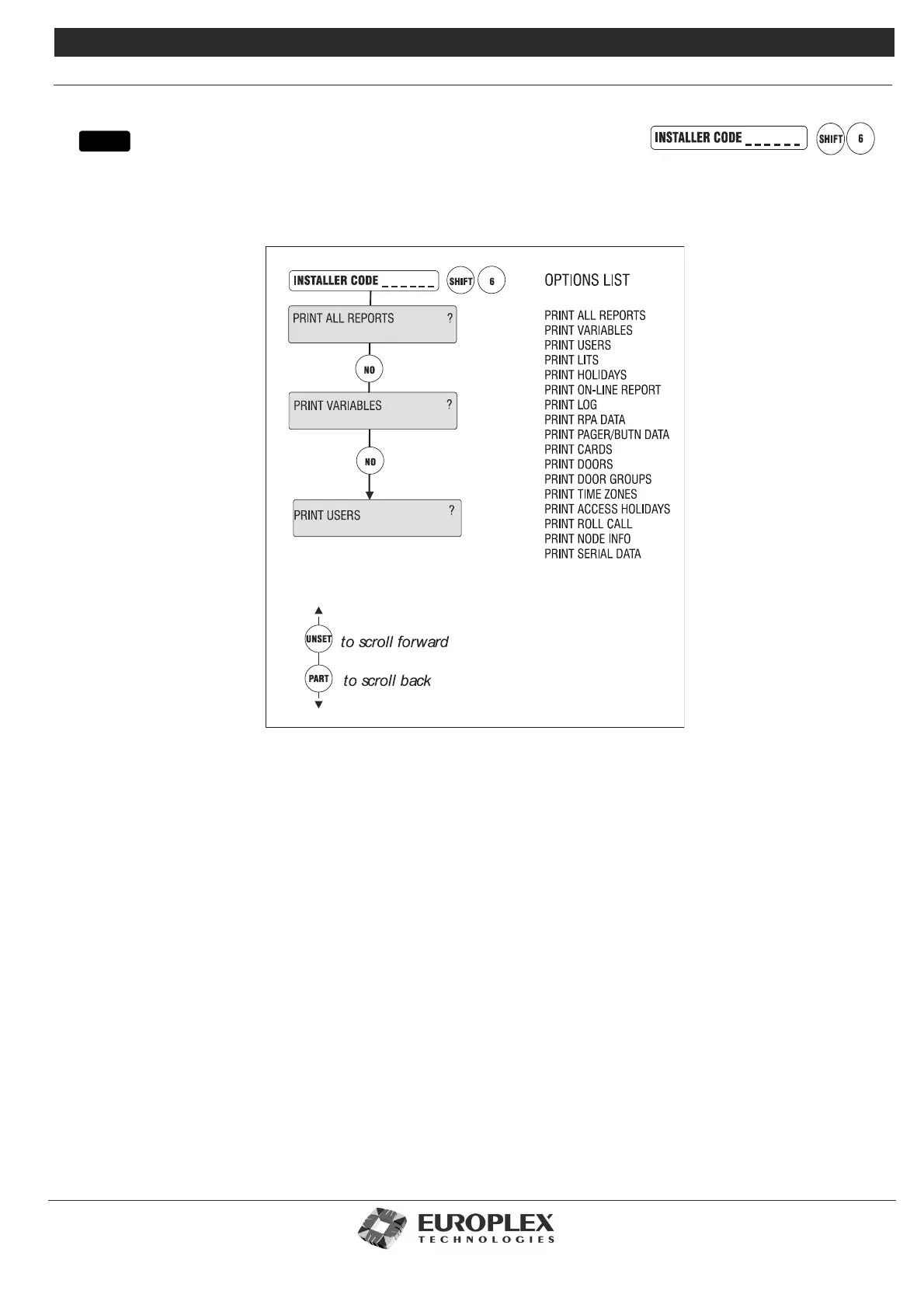 If not all reports are required, press NO and the option to print each in turn is displayed. If the PRINT LITS ? option is