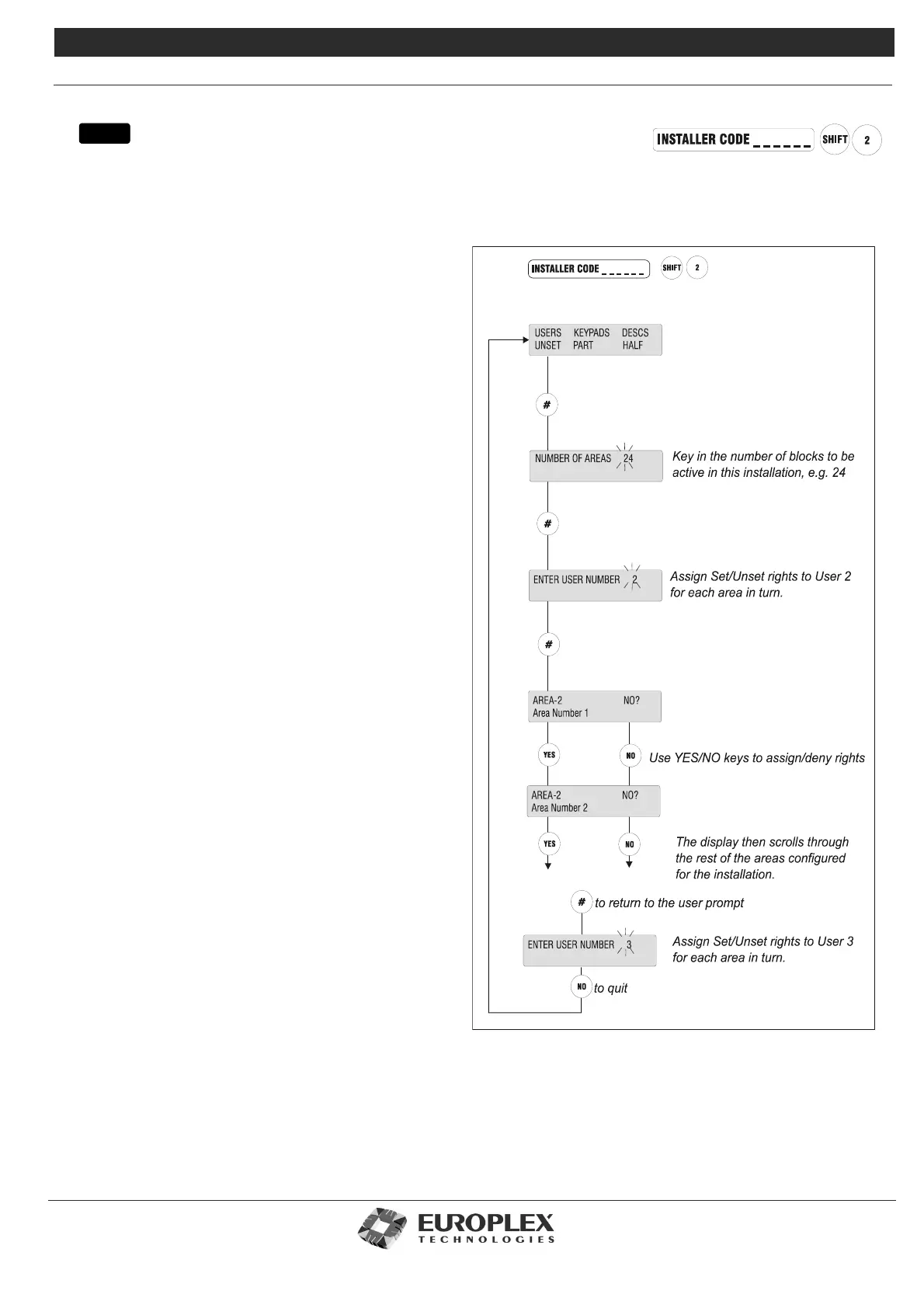 and Unset/Disarm rights to system users, keypads to areas, and programming area names.
