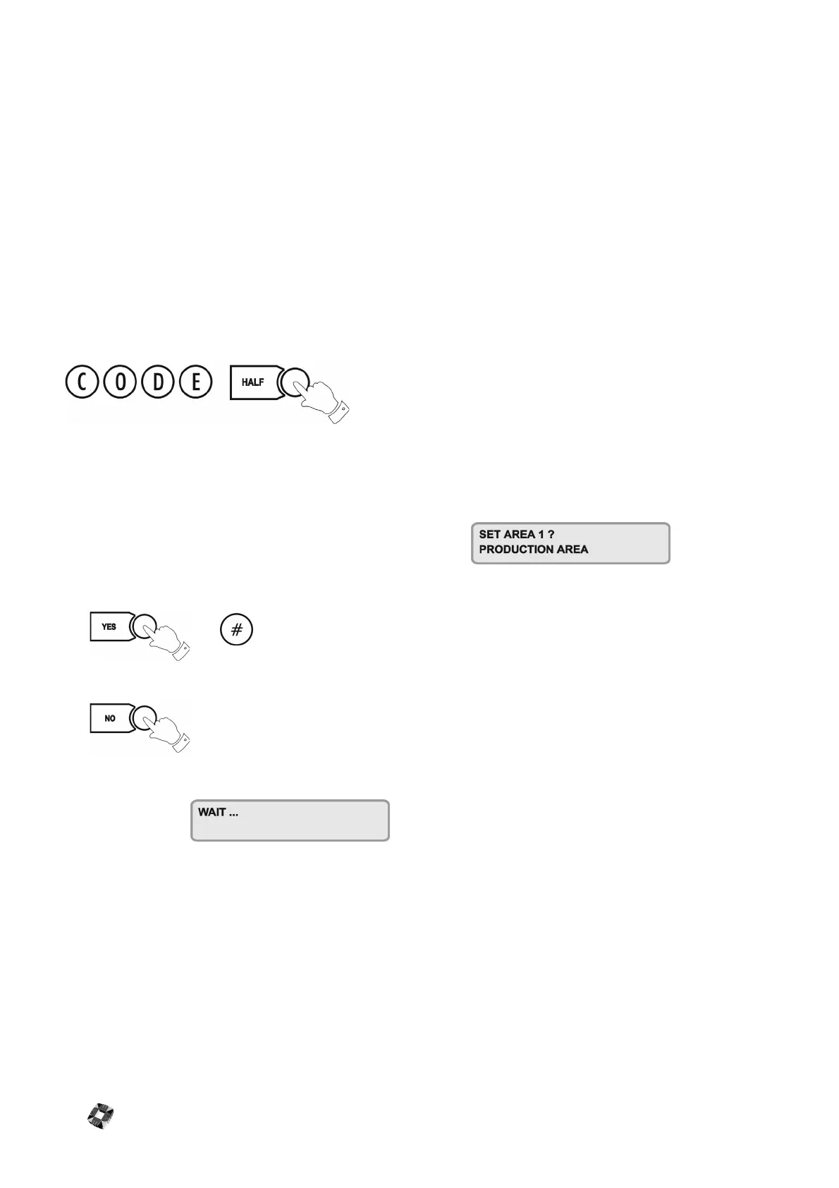 To set/arm an area, key in your Code plus HALF.