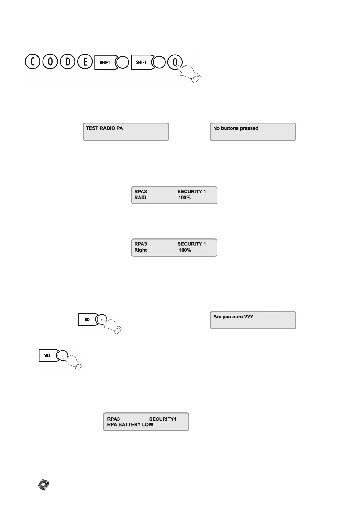 This option allows you to test each RPA unit in turn to ensure that the functions are correctly configured.