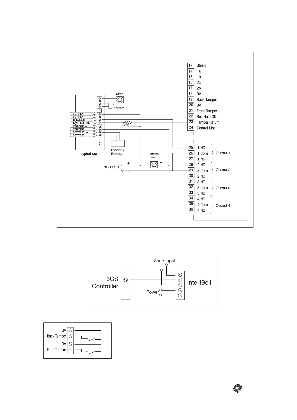 Bell Hold Off (BHO) and Tamper Return (TR) These are used for connection of a self activating bell, as shown