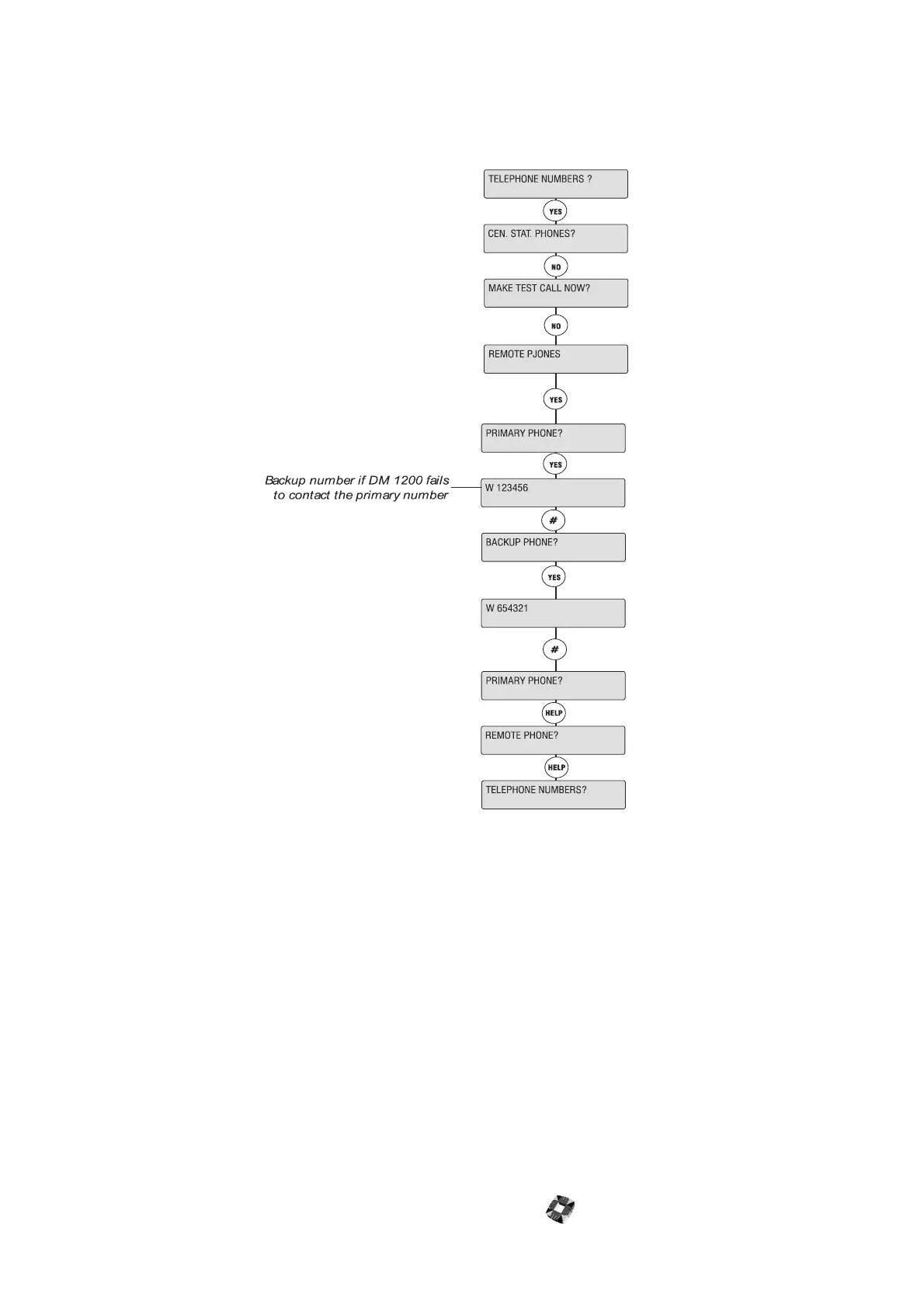 To program the DM1200 to communicate with a remote PC, simply program two phone numbers in the remote