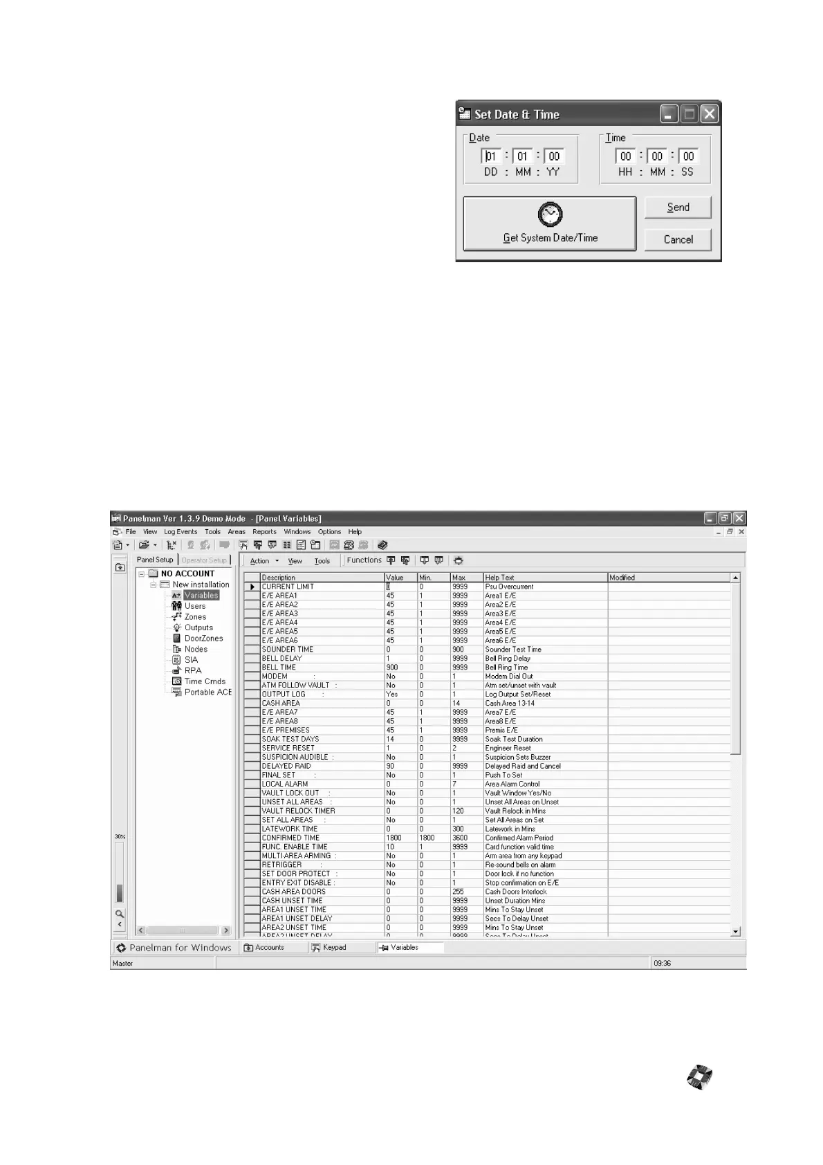 Click "Send" to send Date and Time to Panel.