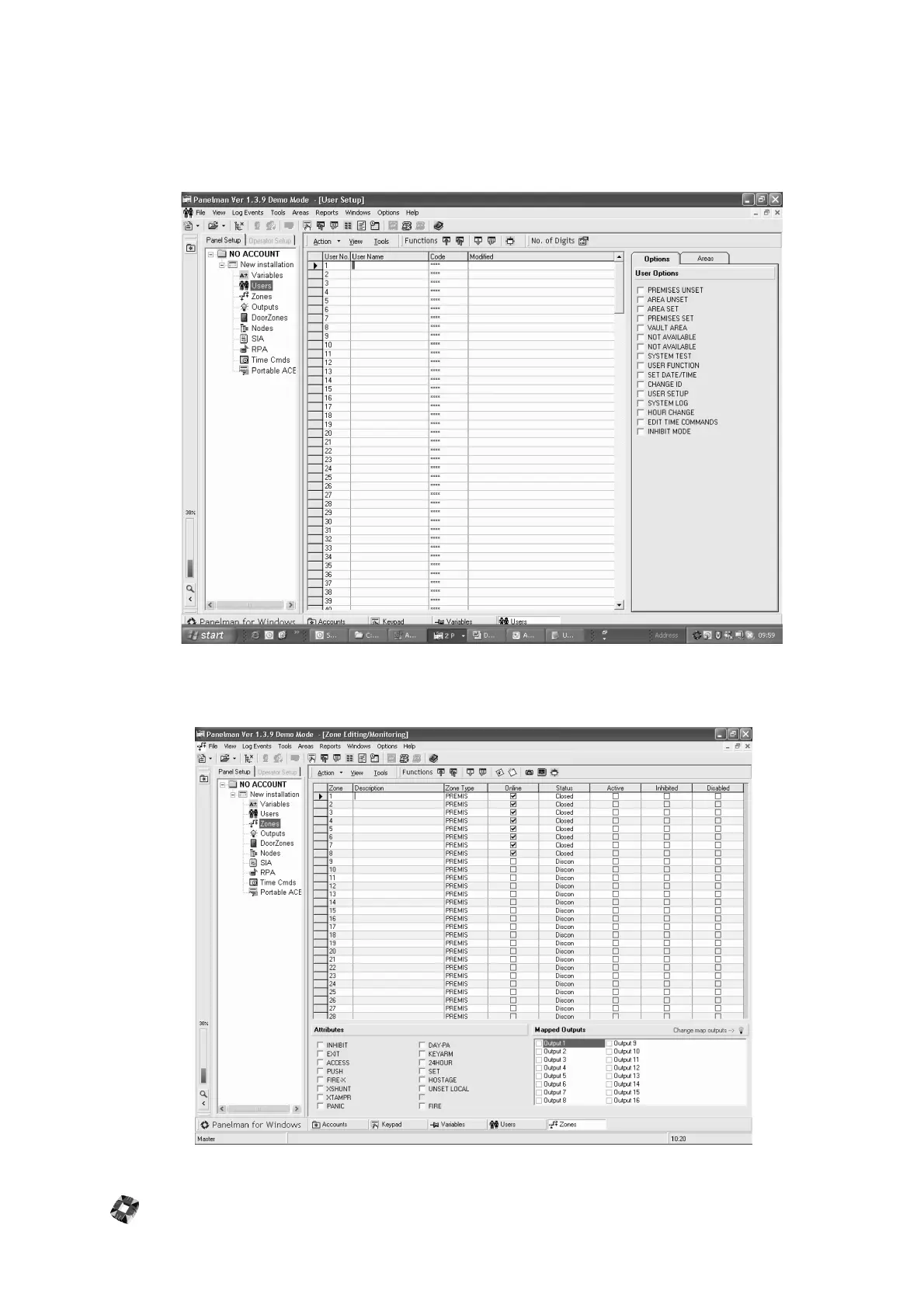 User Setup Window