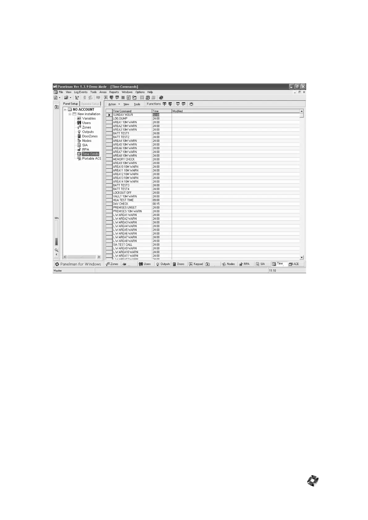All Panel Time Commands can be Uploaded or Downloaded from this Window using the Functions Buttons.