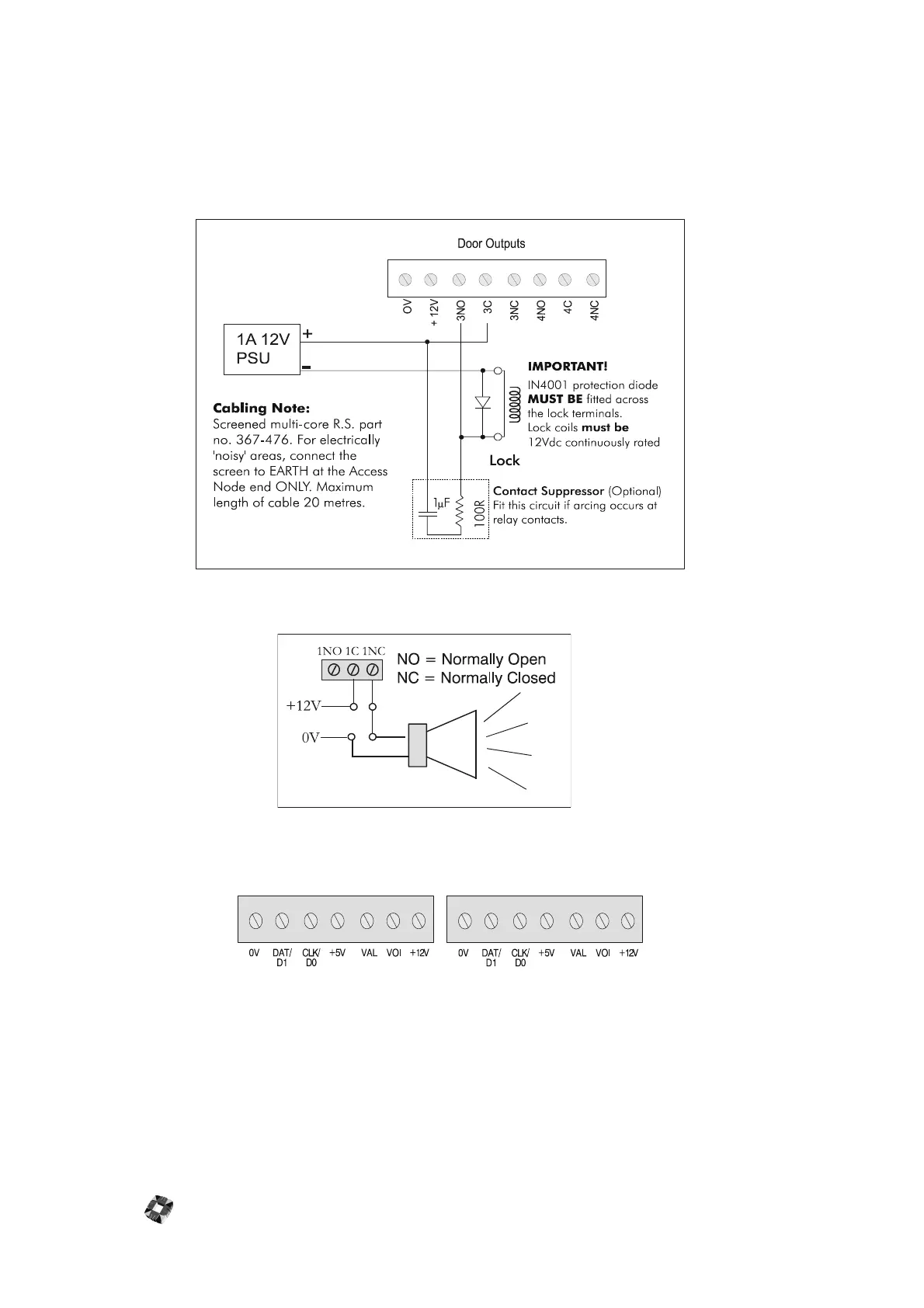 Door outputs These door outputs are used for driving the door locks. Door output 1 is linked to Reader 1. The
