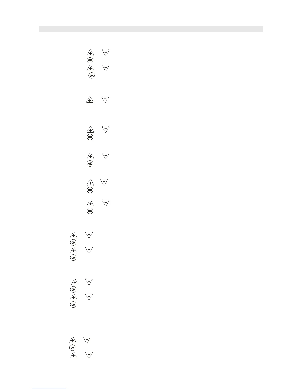 4. Press to set/adjust next setting.