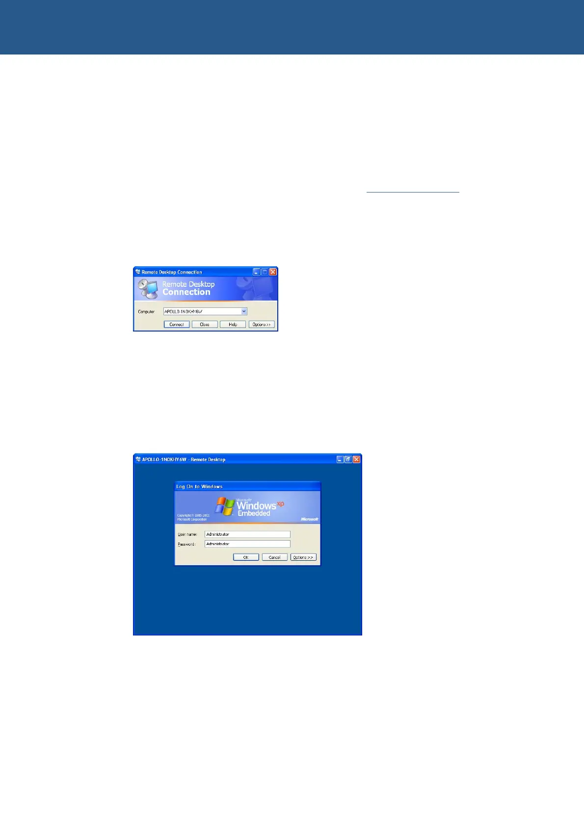 communicate with the APOLLO. Remote Desktop Connection enables the desktop of