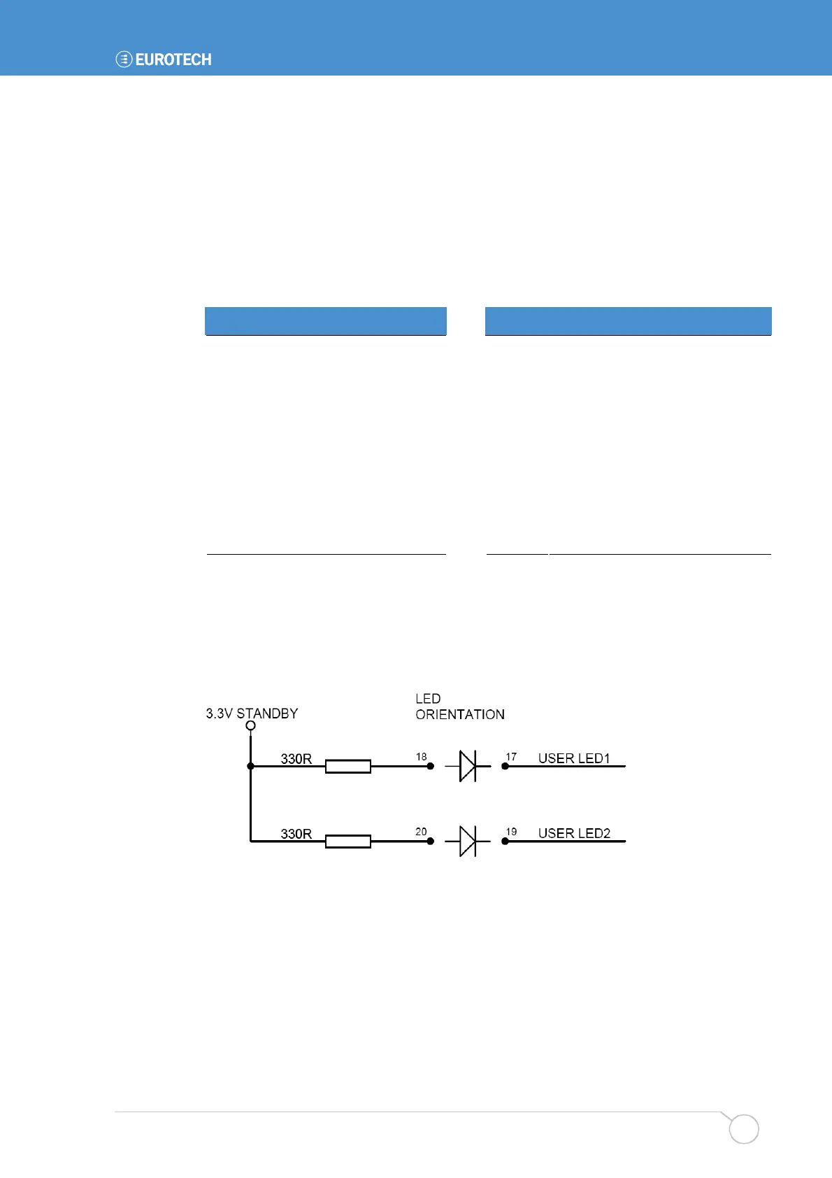 Two connections for LEDs are provided on the front panel interface connector, these can