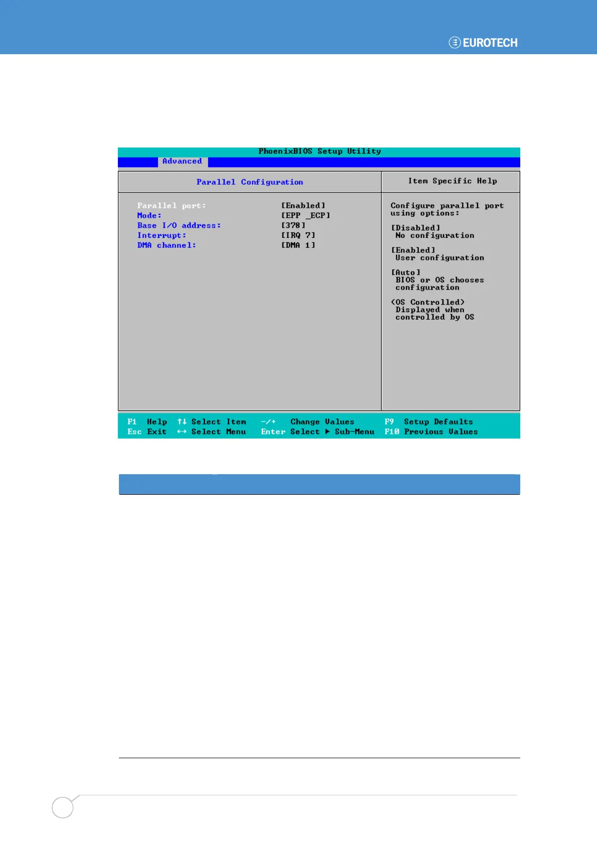 To specify parallel port configuration settings, highlight Parallel Port Configuration in