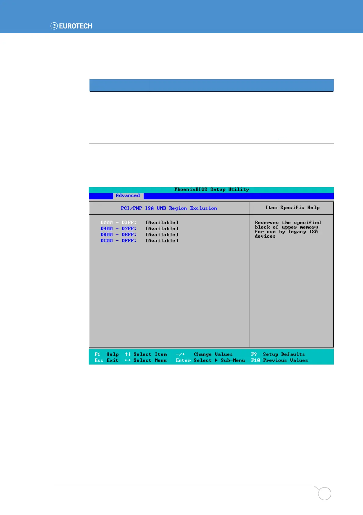 PCI/PNP ISA UMB region exclusion settings