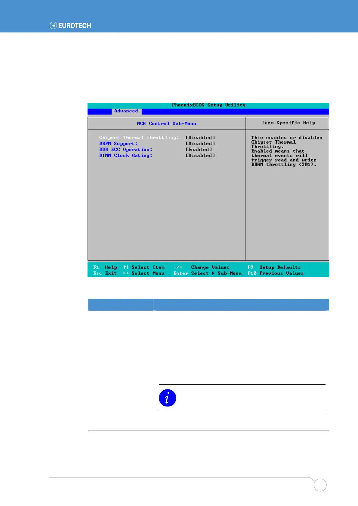 To specify MCH control settings, highlight MCH Control Sub-Menu in the Advanced