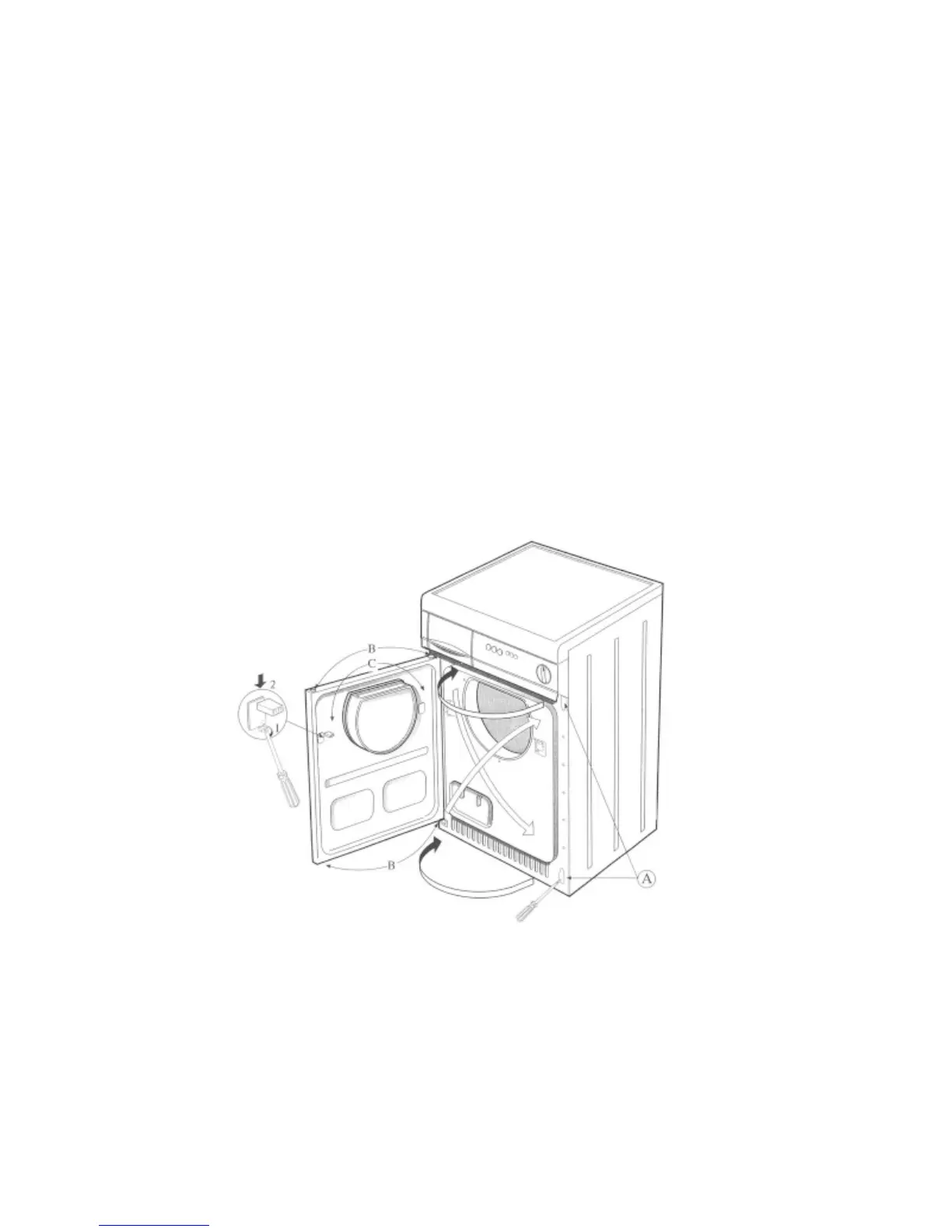 9. Place the door catch into the left receptacle (C), making sure the electrical connection is positioned