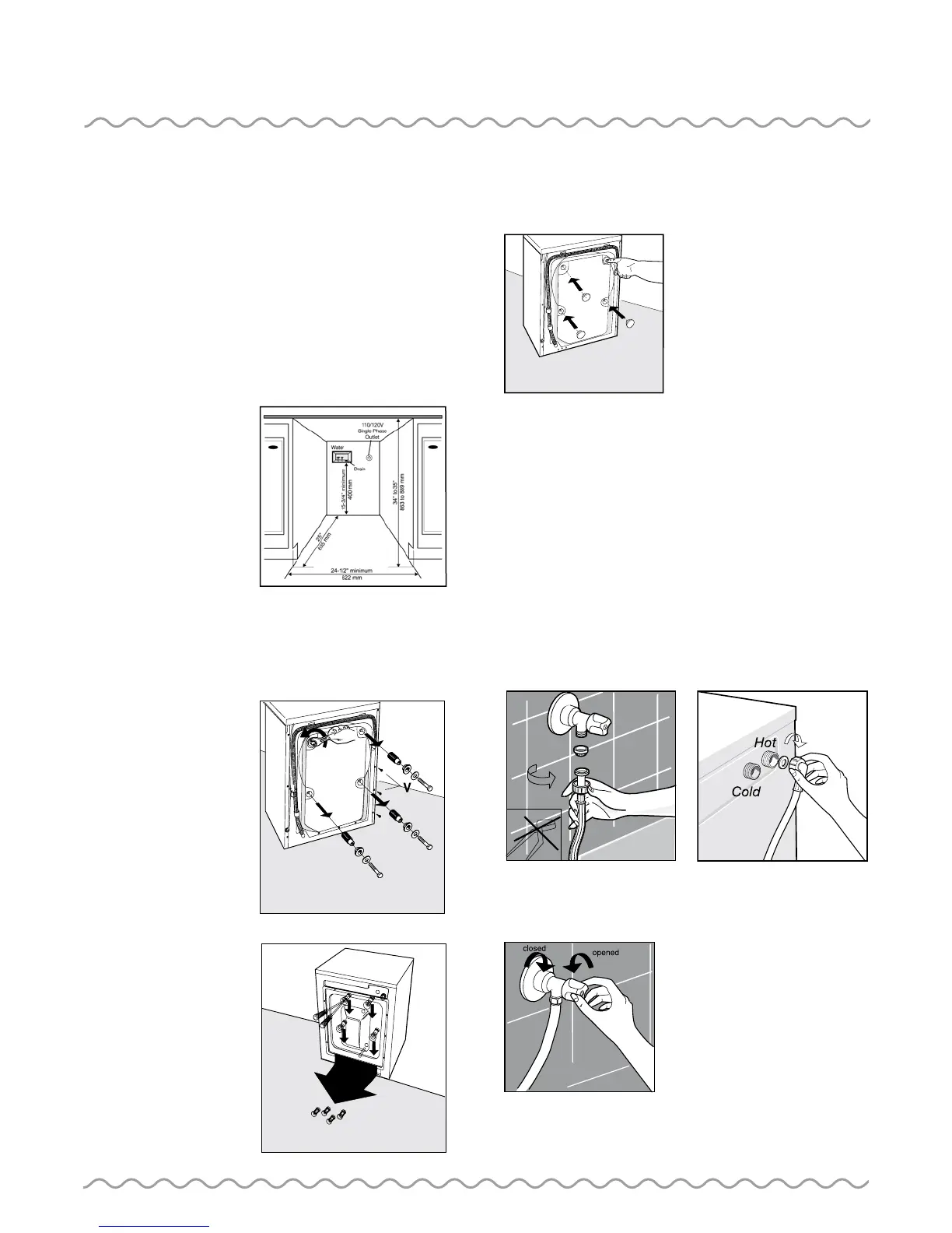 carefully to avoid damage to the machine’s pre installed drain hose and power