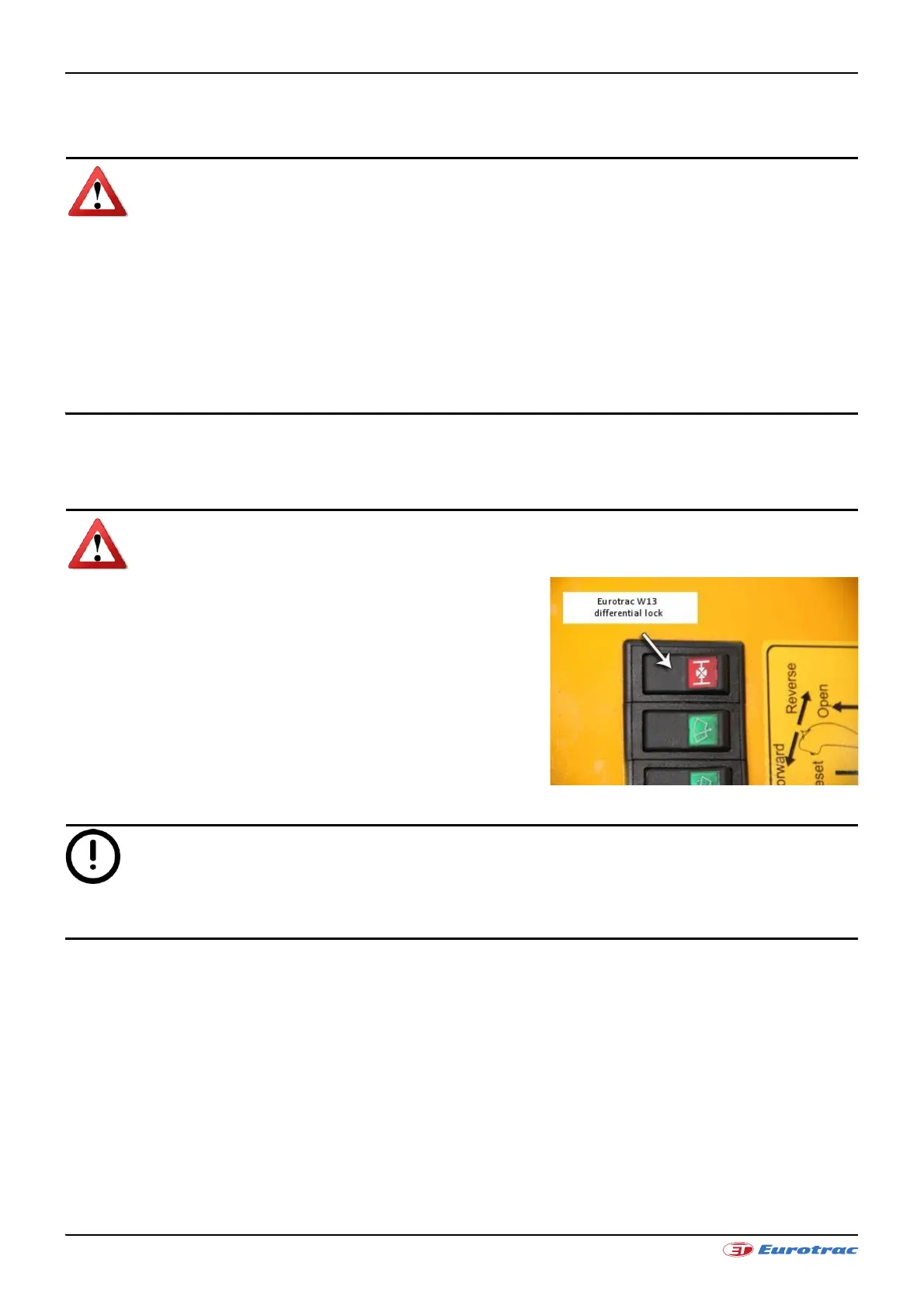 The Eurotrac W13 is equipped with a differential lock (locks all 4
