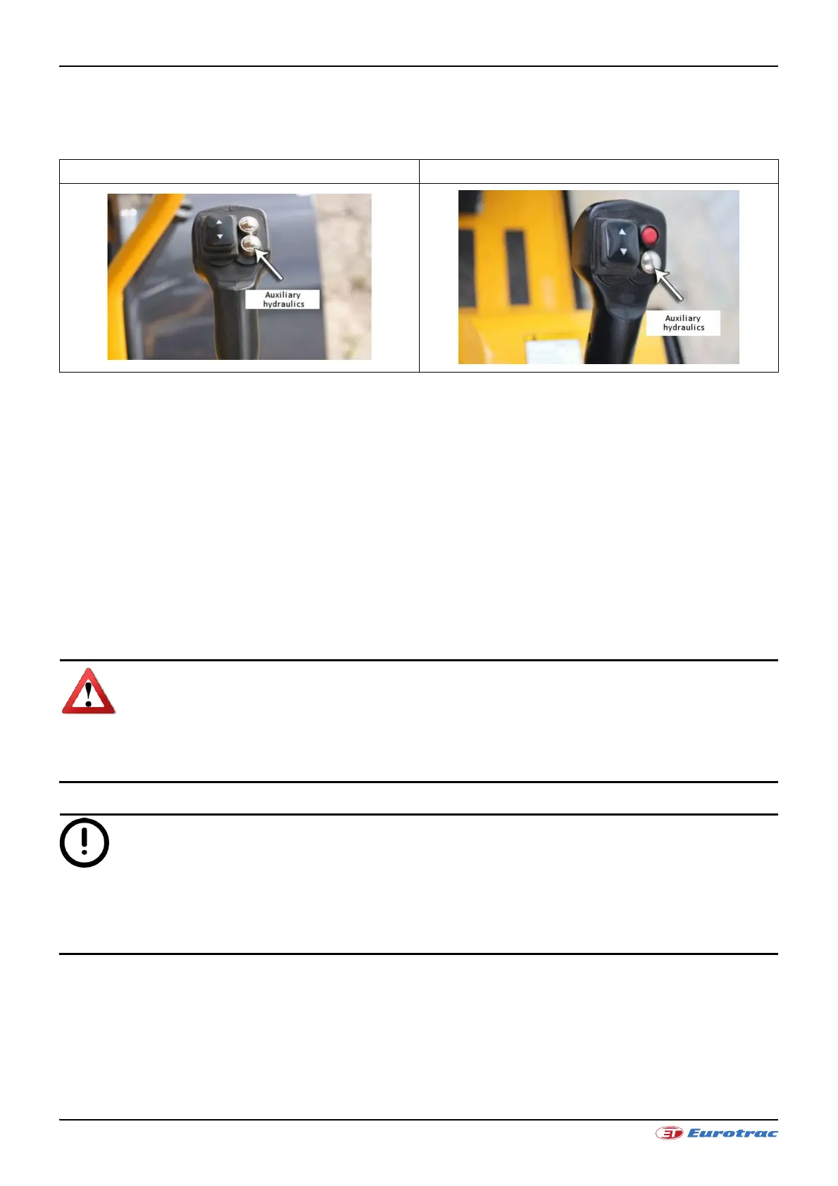and right. The ancillary hydraulics can be very precisely controlled. Take care to use the joystick carefully.