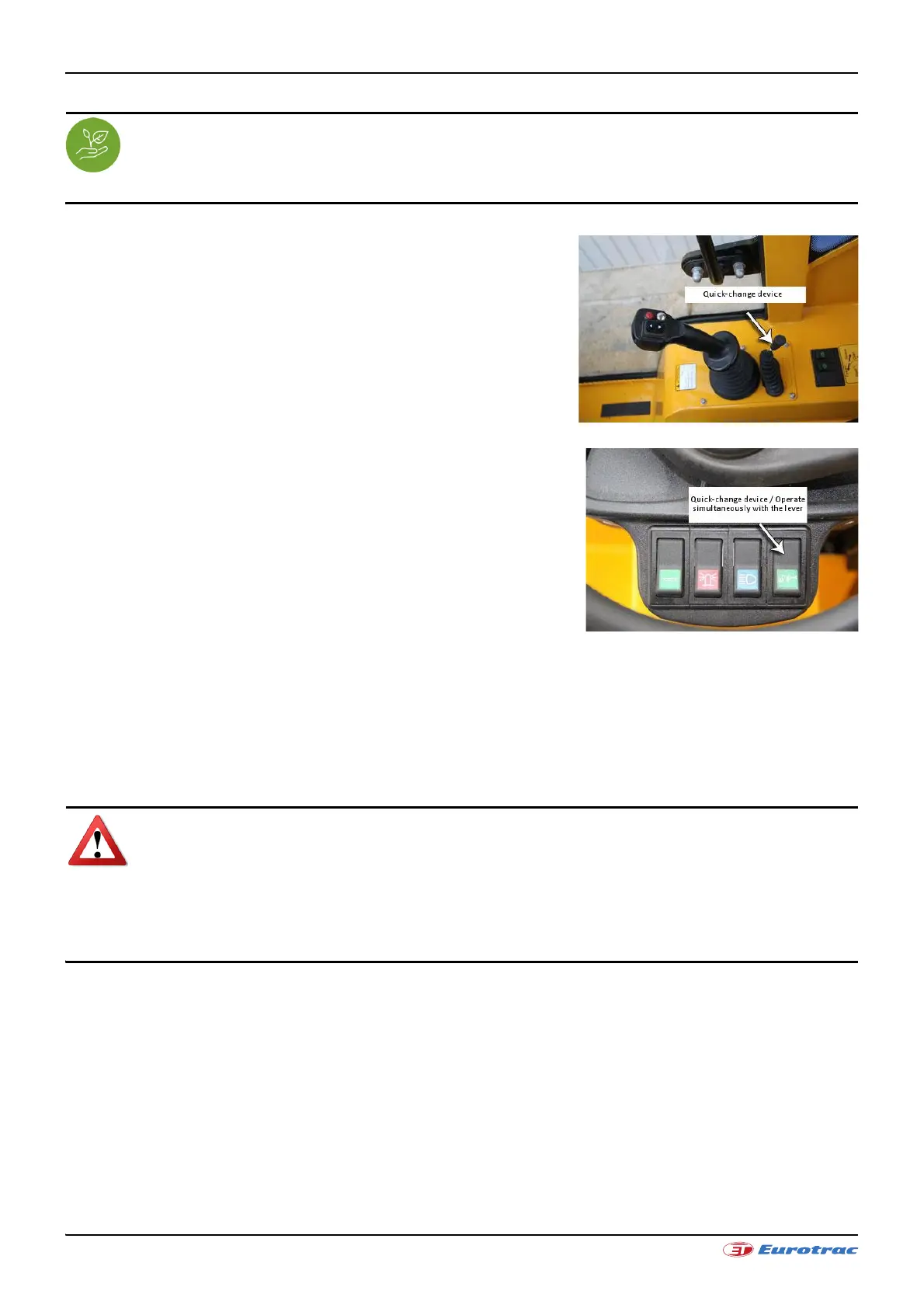 Eurotrac W13 special feature: in addition to the quick-change device lever, the quick-change device switch must be