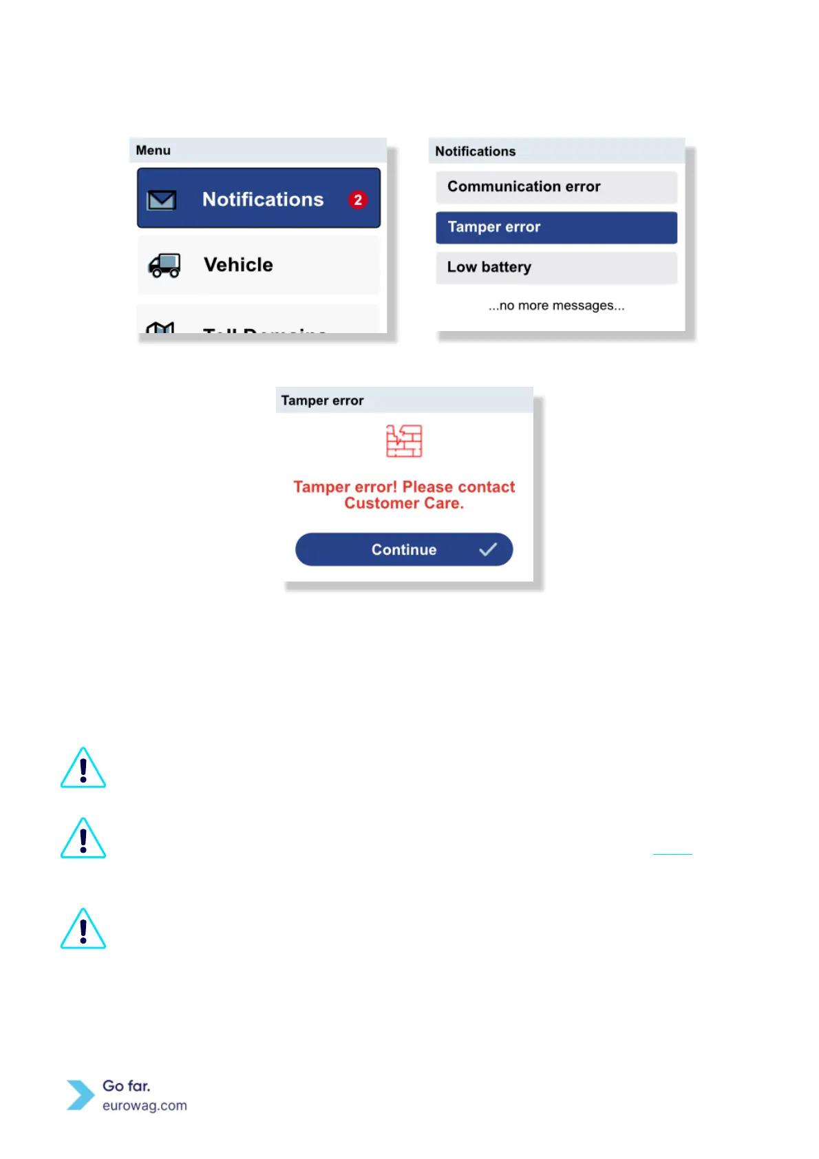 Messages are displayed when a user (e.g. driver) tries to perform a function on the EW OBU that