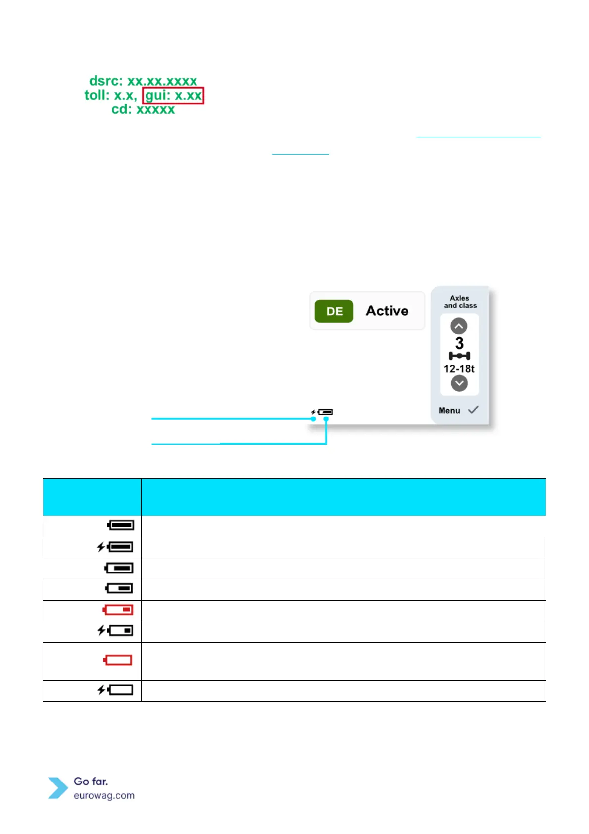 Screem displaying EW OBU Battery