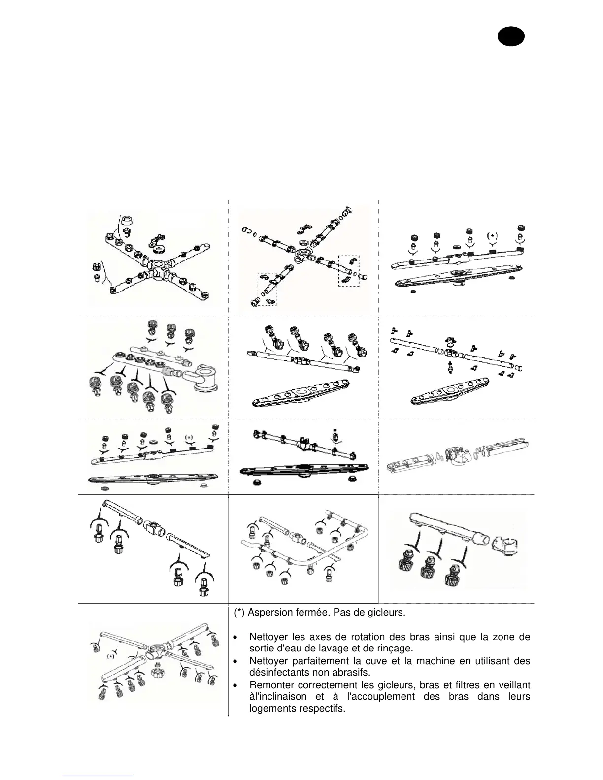 • Enlever et nettoyer les bras et les gicleurs de lavage et de rinçage.