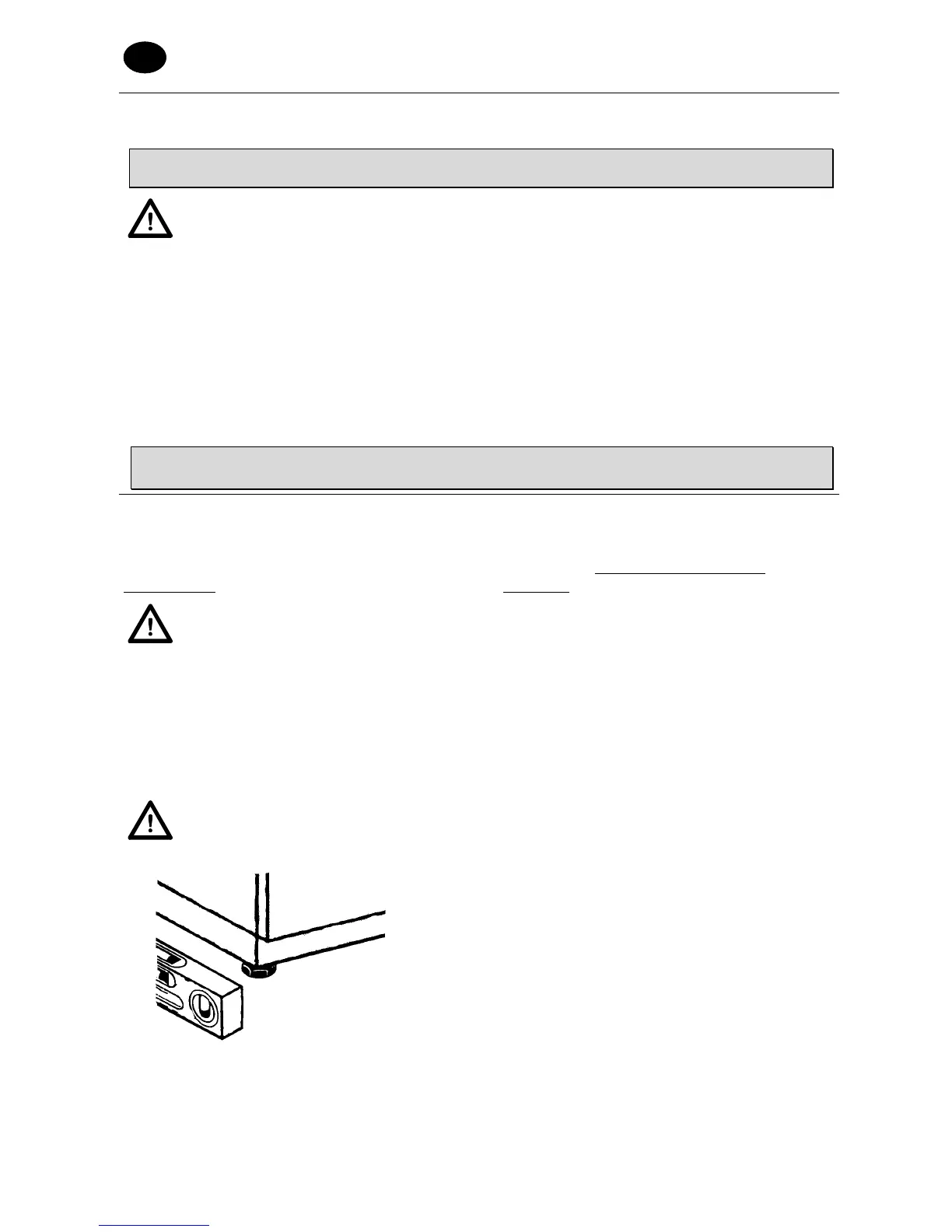 • Per garantire la stabilità, installare e livellare la