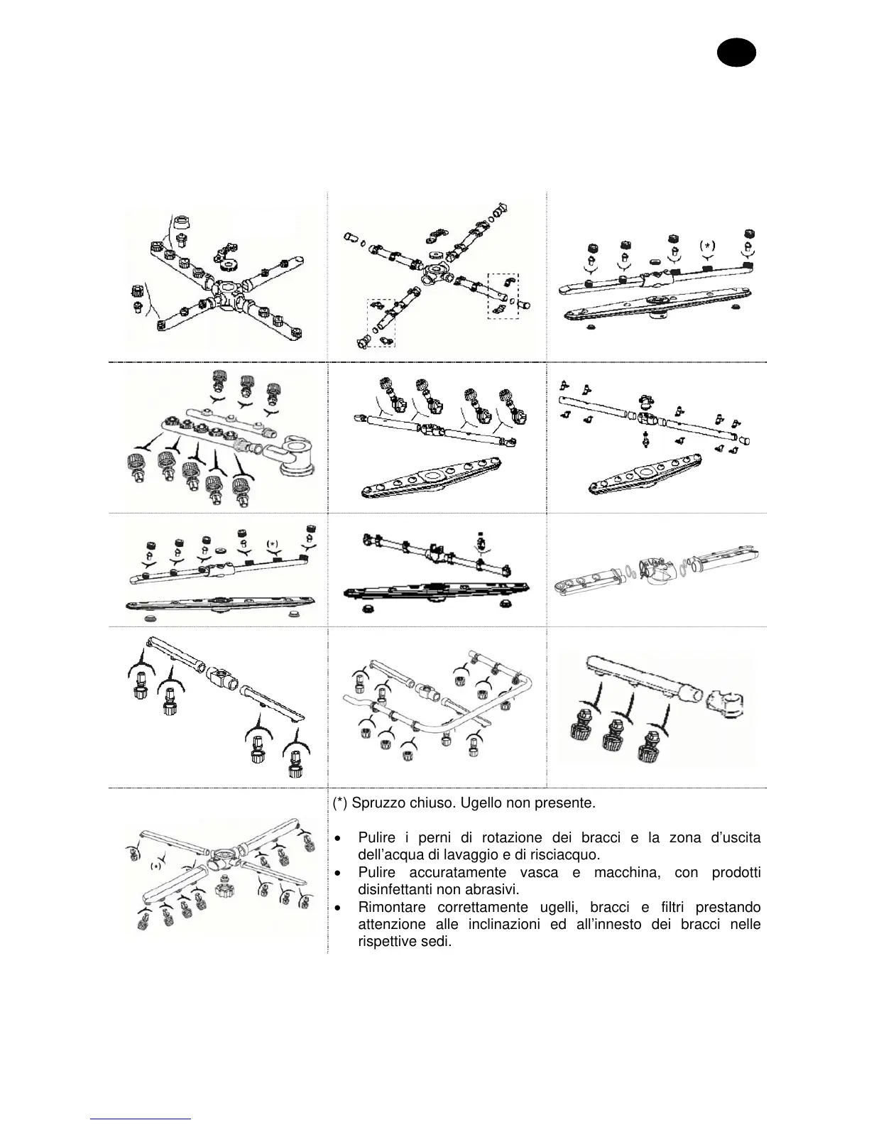 • Smontare e pulire completamente bracci ed ugelli di lavaggio e risciacquo.