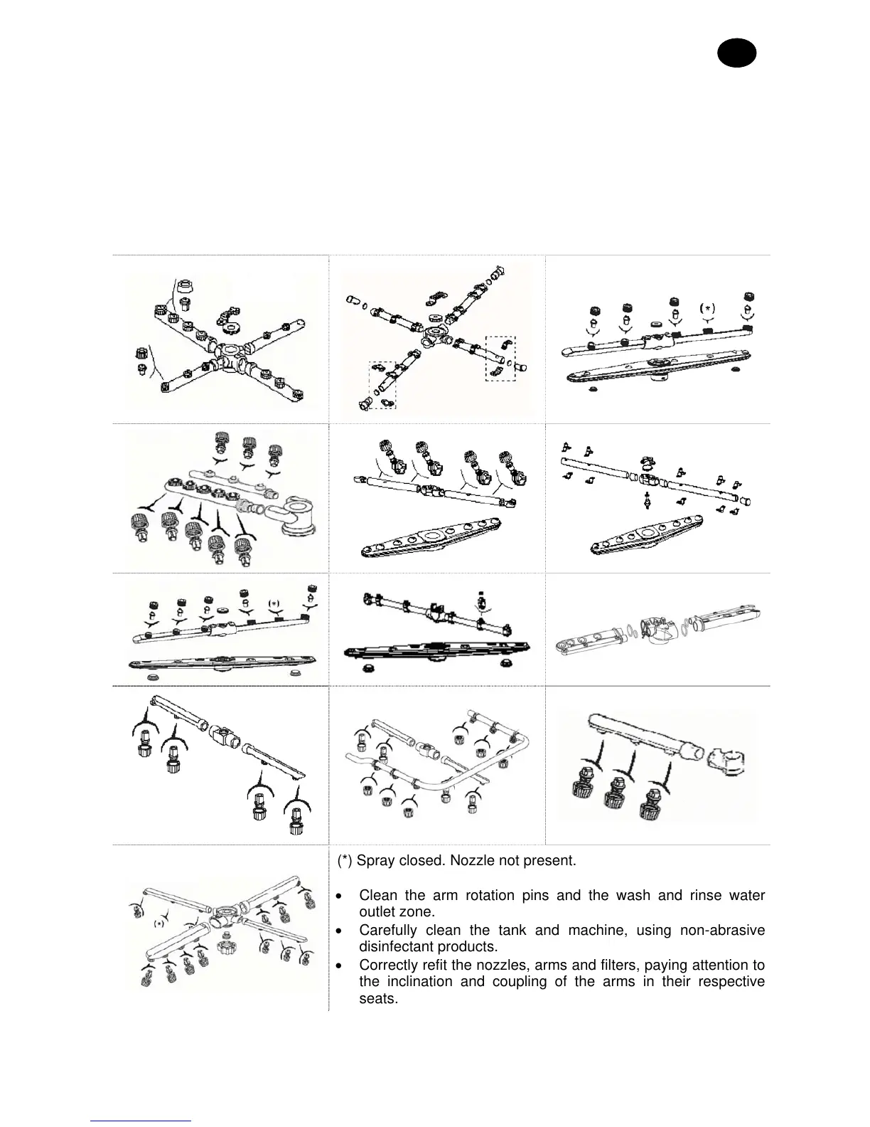 • Correctly refit the nozzles, arms and filters, paying attention to