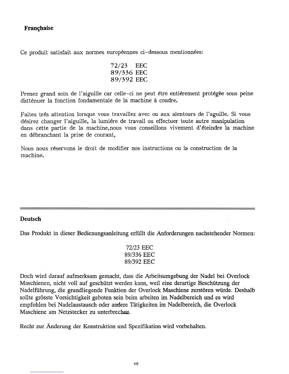 empfohlen bei Nadelaustausch oder andere Tiitigkciten im Nadelbereich, die Overlock