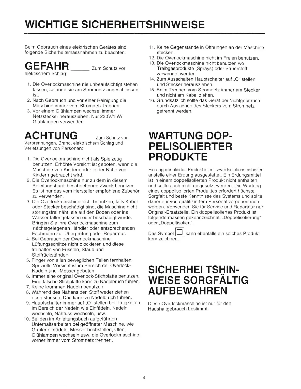 Die Overlockmaschine nie unbeaufsichtigt stehen