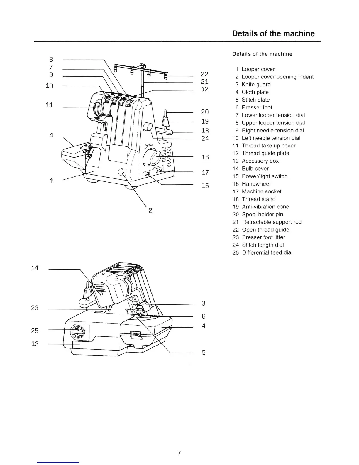 7 Lower looper tension dial