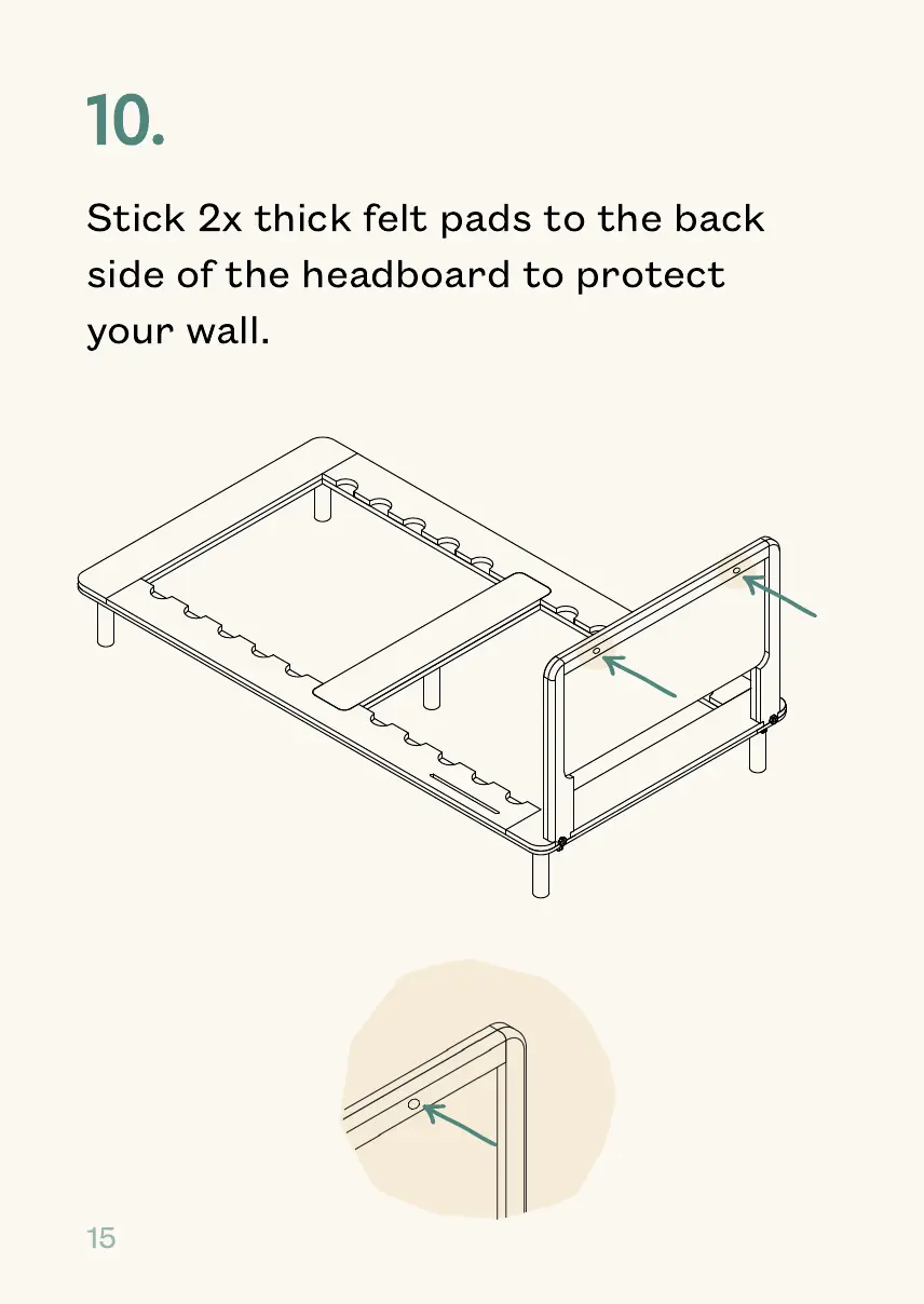 EVA single timber bed frame - Step 10: Attach Wall Protection