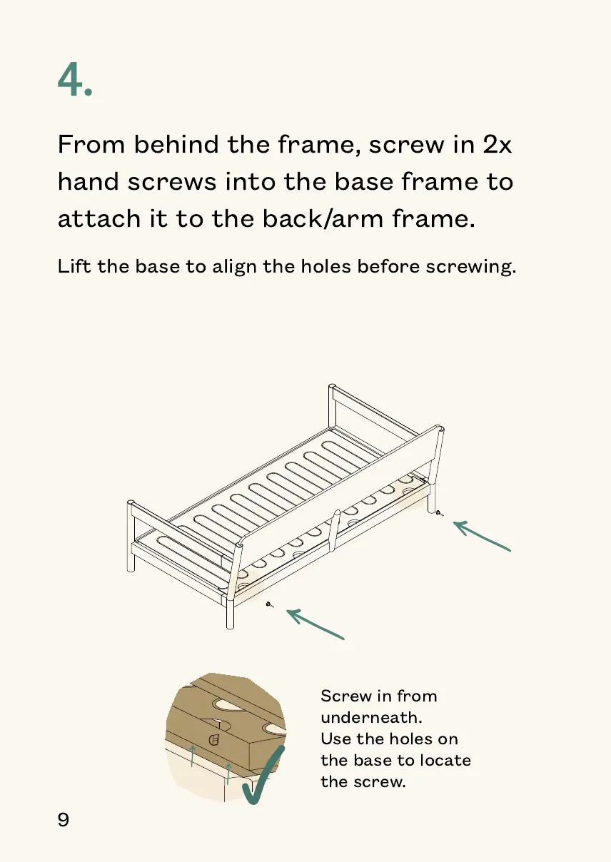 EVA Slideaway Sofa Bed - Step 4: Secure Base to Back Frame