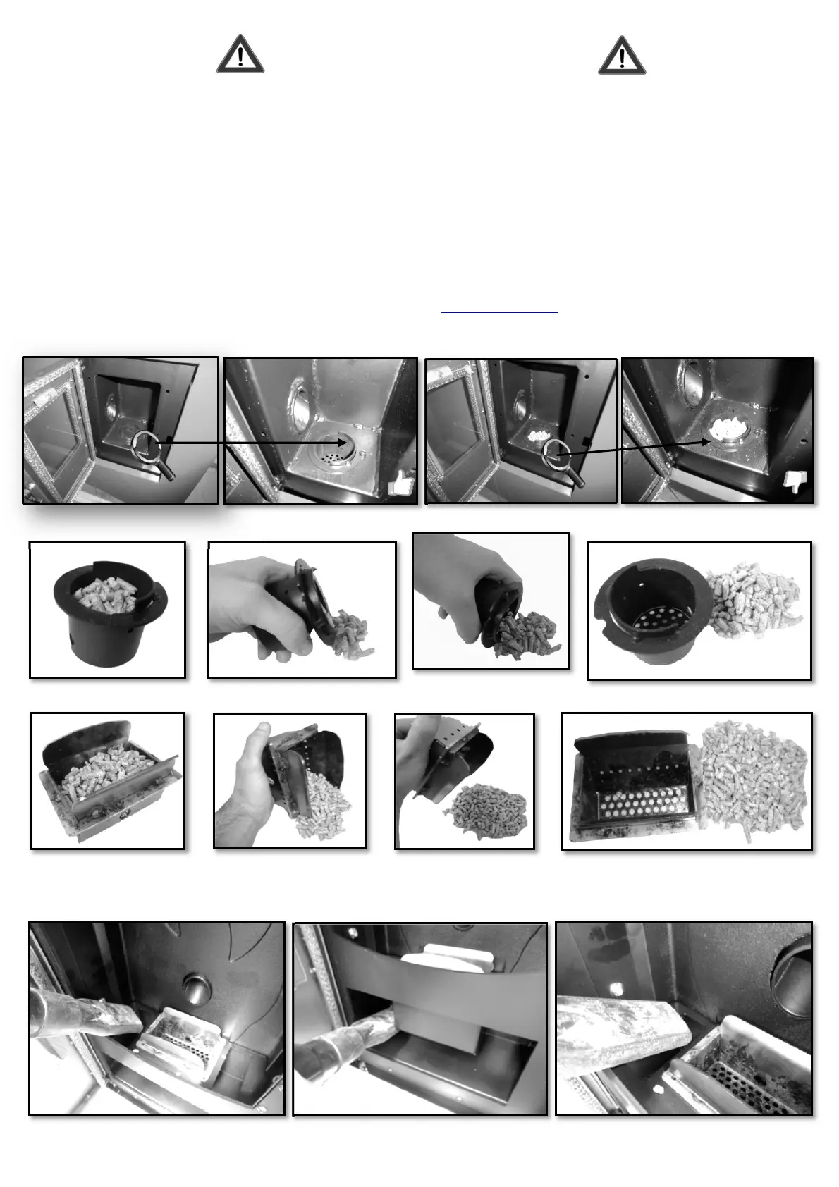 5. DO NOT POUR PELLETS BY HAND in the burn pot to facilitate stove's ignition.