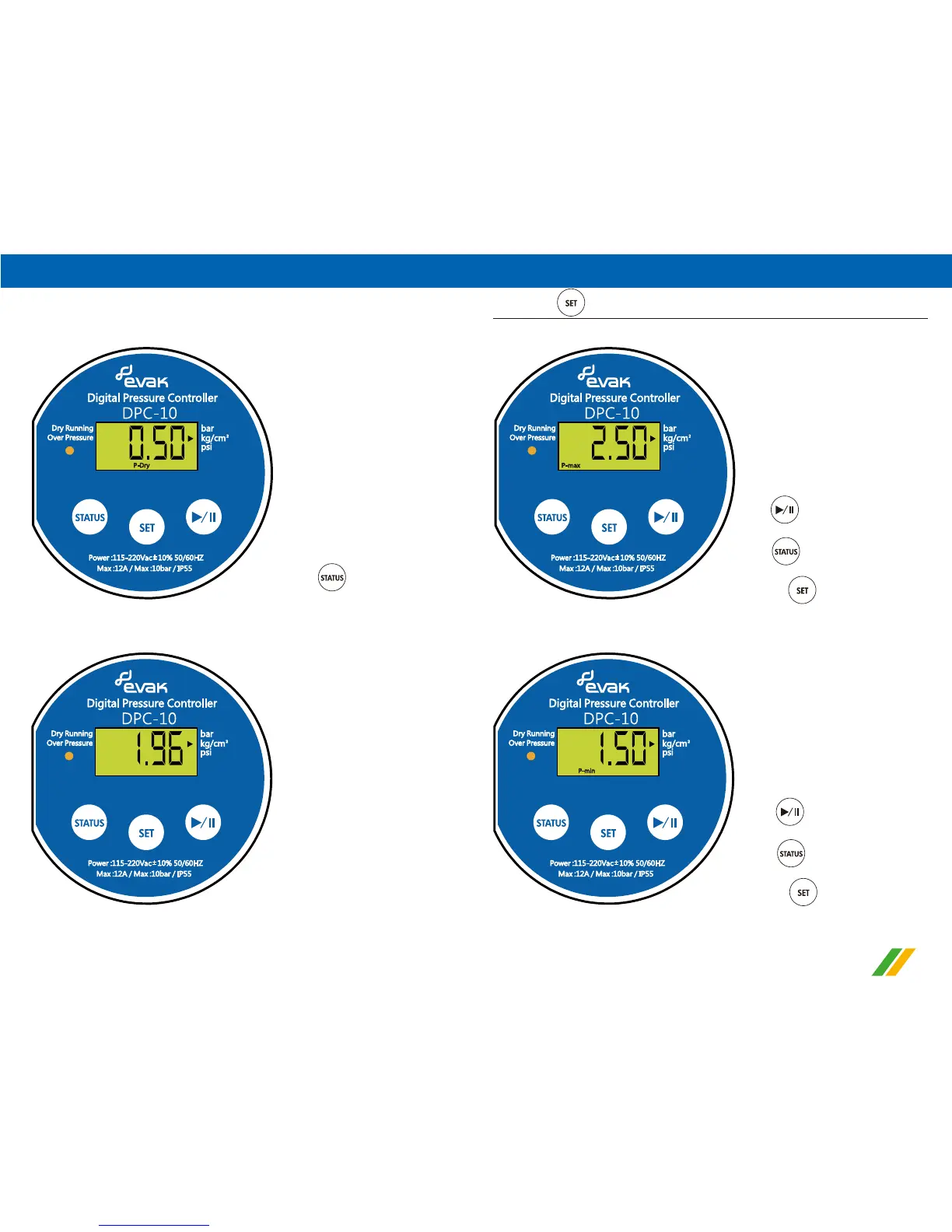 3).Pressure of water shortage setting display (Dry running)