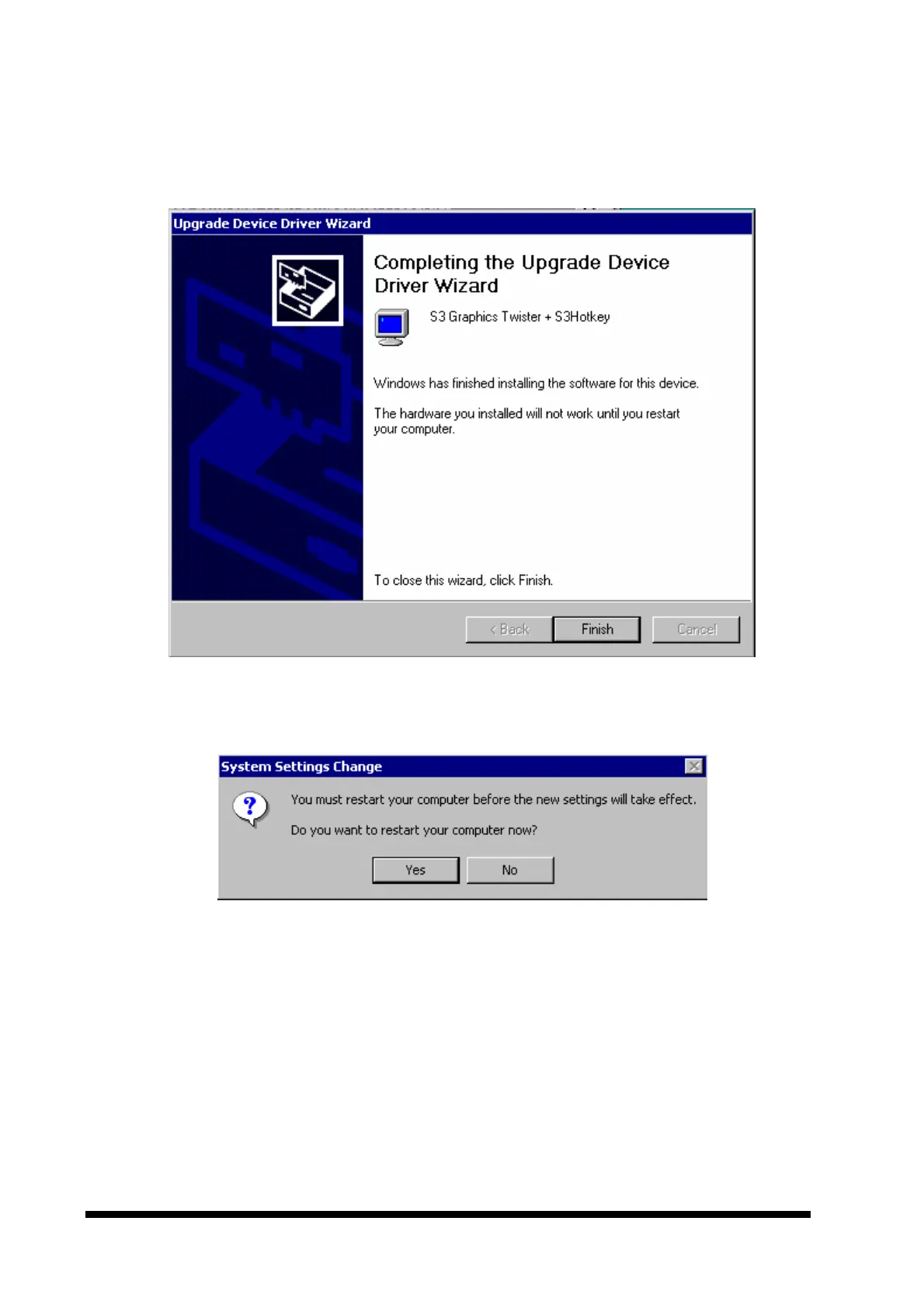 11. To complete the driver installation, reboot the computer by clicking the ‘Yesbutton in