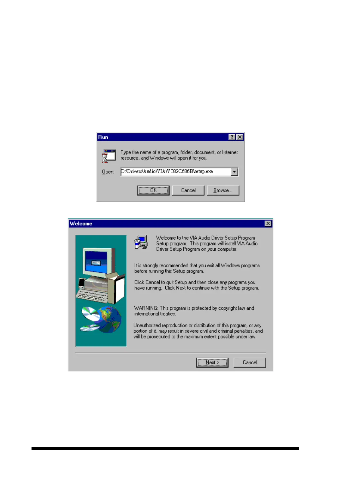 1. Click the ‘Start’ button on the task bar, select ‘Run’ and specify the location of VIA