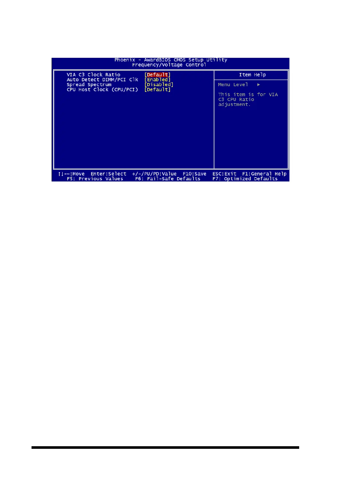 This item allows you to select the VIA C3 CPU clock ratio.