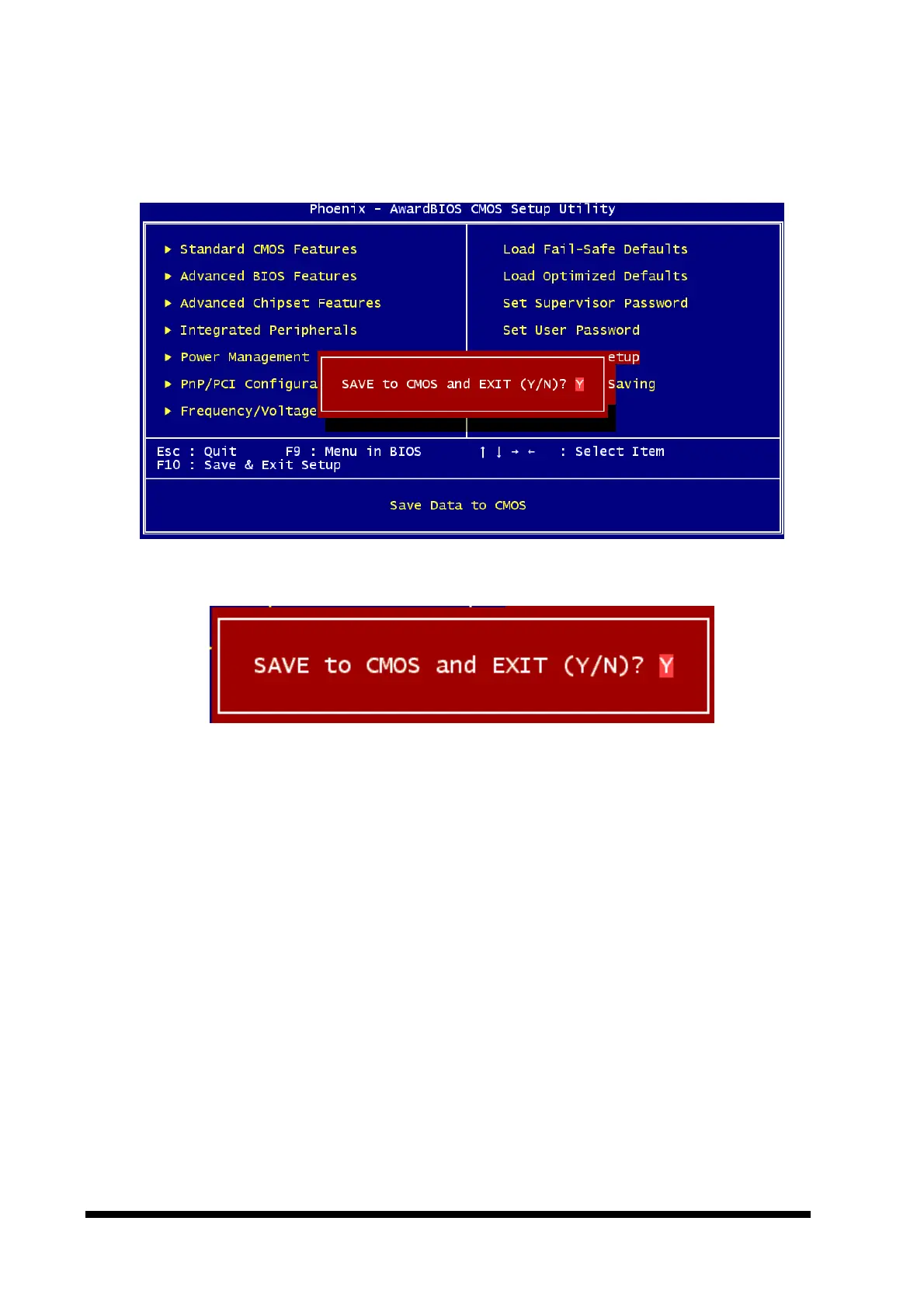 Pressing “Y” stores the selections made in the menus in CMOS – a special section of