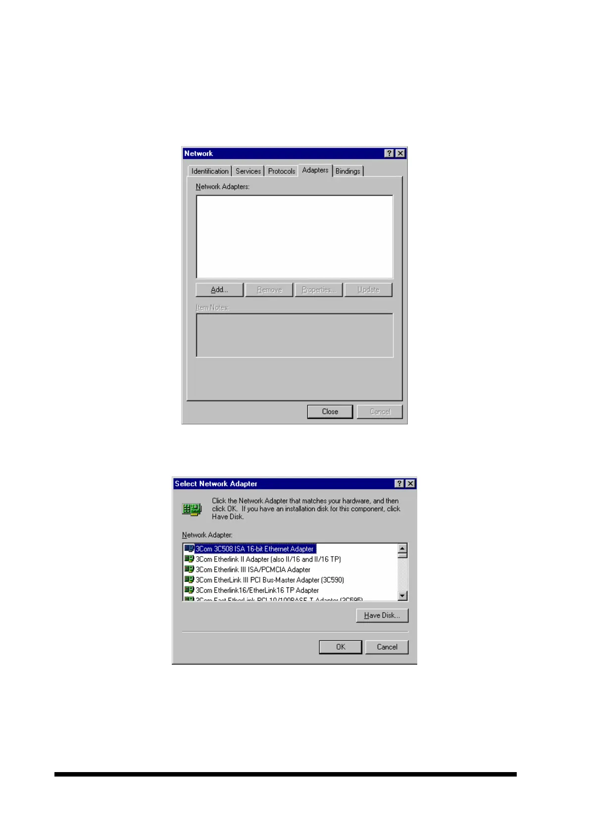 4. Click the ‘Have Disk… ’ button to install the Network adapter driver from CD-ROM. A