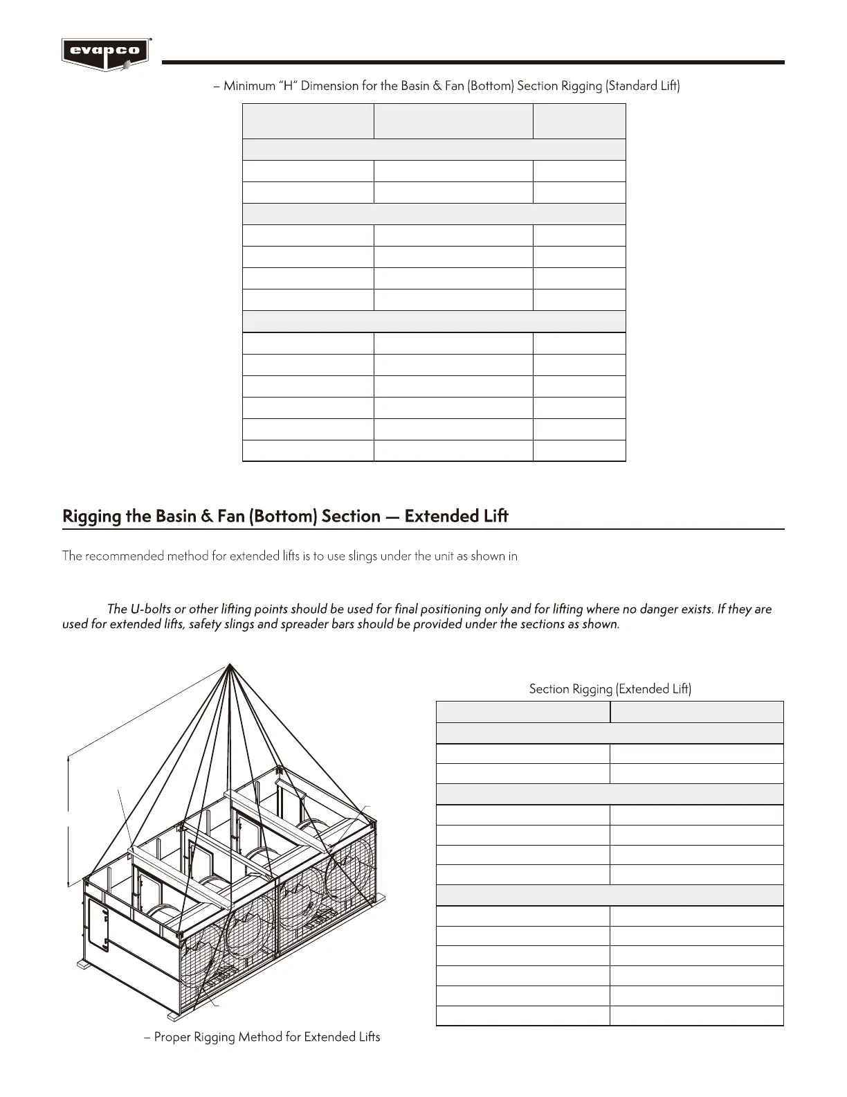 between the cables at the top of the section to prevent damage to the upper flanges. See Table 3 for the minimum “H” dimensions for