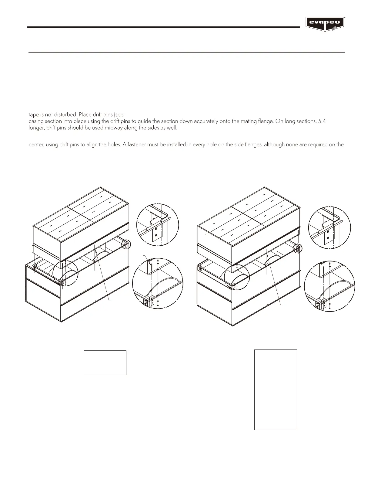 Before assembling the heat transfer casing (top) section to the cold water basin and fan (bottom) section, remove any loose parts shipped